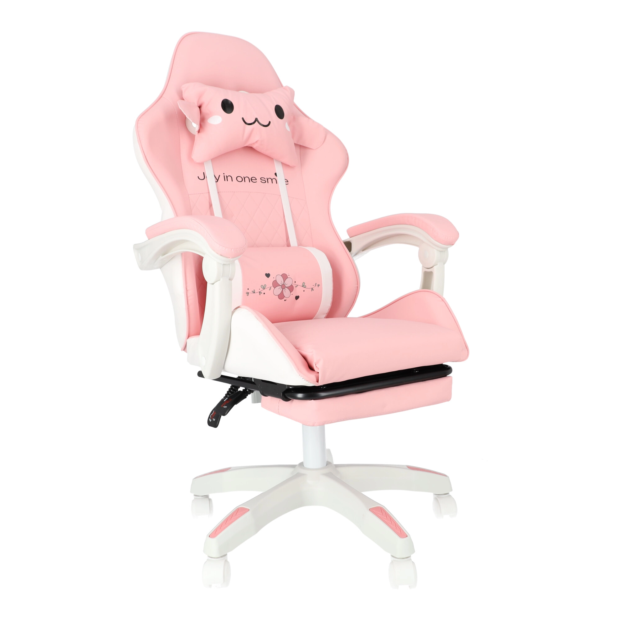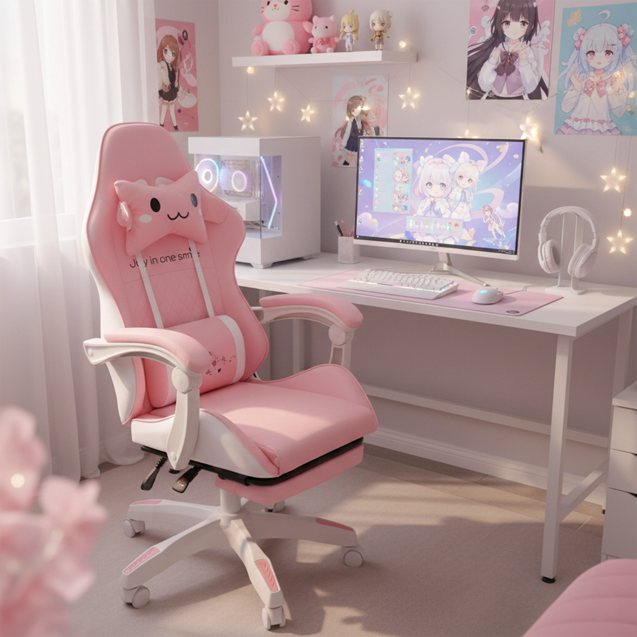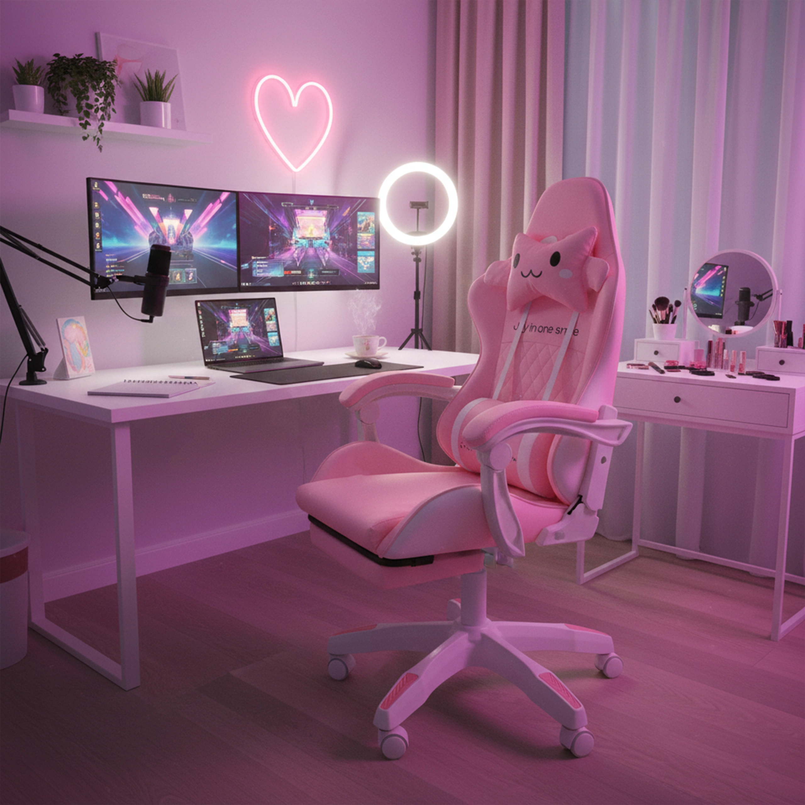 Den lyserøde børne gaming- og kontorstol kombinerer ergonomisk komfort, justerbar højde og en udtrækkelig fodstøtte til hurtig afslapning. Skålformet sæde med stabil rygstøtte, bløde armlæn med skum og jævn 360° rotation med hjul gør både læring og leg lettere. Inkluderer puder til nakke og lænd for sundere siddestilling på børneværelset.