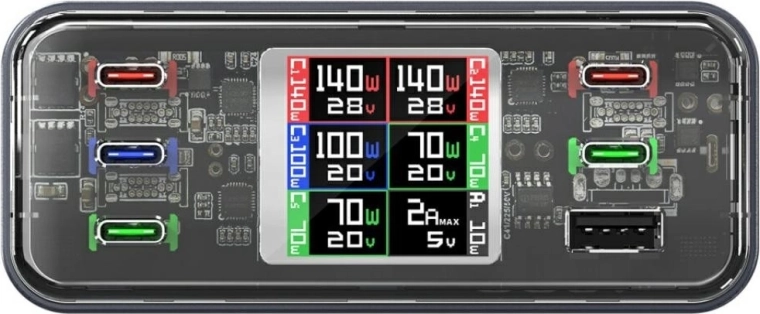 Det modulære DIY‑system lader dig fleksibelt arrangere portene efter behov. Det integrerede LED‑display viser den aktuelle effektfordeling og opladningsparametre. Det aluminiumsbaserede kabinet ser ikke bare godt ud, men afleder også varme effektivt og øger enhedens holdbarhed.
