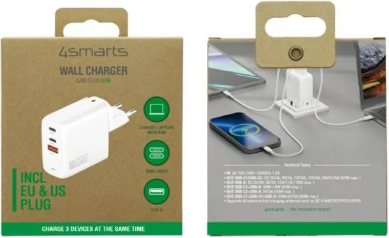 Den brede kompatibilitet sikres af understøttelse af moderne standarder: PD 3.1, QC 4+, PPS, AFC, SCP, FCP samt 2,4 A til Apple. Tilslut blot – opladningen foregår i den maksimalt mulige hastighed efter dit udstyrs behov. Den effektive GaN-arkitektur sparer desuden energi, penge og miljø.