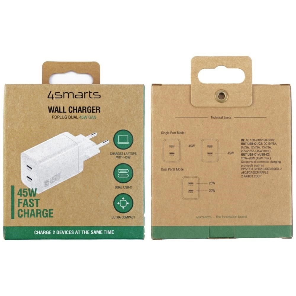 Moderne GaN reducerer størrelsen, mindsker varmeudvikling og øger effektiviteten. Du får 45 W effekt i en let og pladsbesparende oplader med EU-stik.