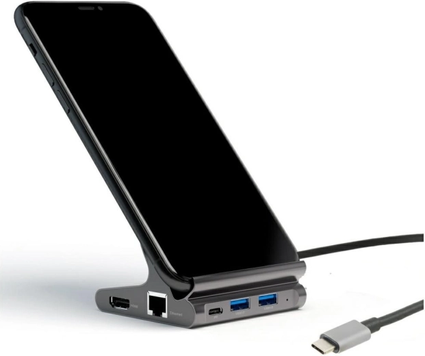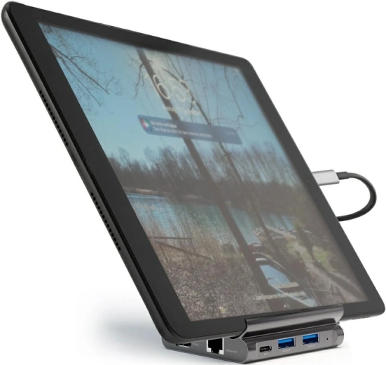 Skab en effektiv arbejdsstation af din mobil eller tablet. Den integrerede 7‑i‑1 hub udvider forbindelsesmulighederne med alt, du behøver til arbejde og underholdning: tilslut tastatur, mus, ekstern disk, skærm via HDMI, netværk via RJ45, og læs data fra SD/microSD. Takket være USB‑C Power Delivery kan du samtidig nemt strømforsyne enheden.