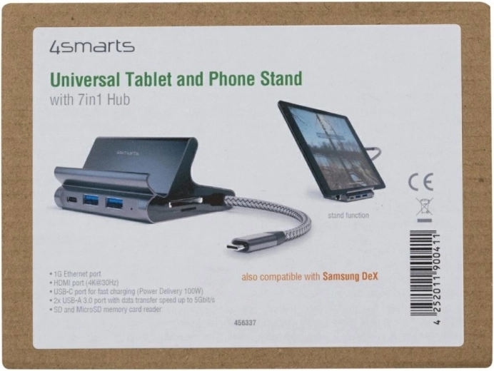 Den massive aluminiumskonstruktion fungerer som en justerbar stander til tablet eller telefon. Skridsikre elementer og en stabil base sikrer behagelig skrivning, videoopkald og medievisning uden rystelser. Understøttelse af Samsung DeX giver et desktop‑miljø med vinduer og multitasking på en stor skærm.