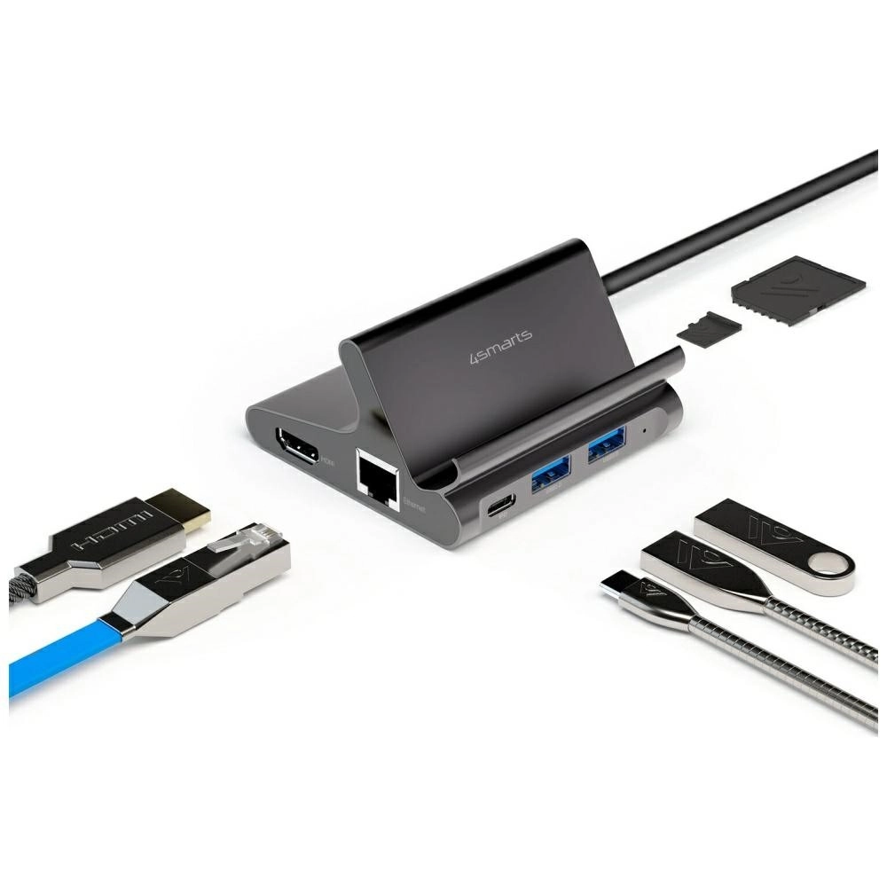 Tilslut en ekstern monitor via HDMI, periferiudstyr via USB‑A, oplad og synkronisér via USB‑C, læs data fra SD/microSD, og udnyt en stabil kablet forbindelse via RJ45 – alt i én kompakt hub.