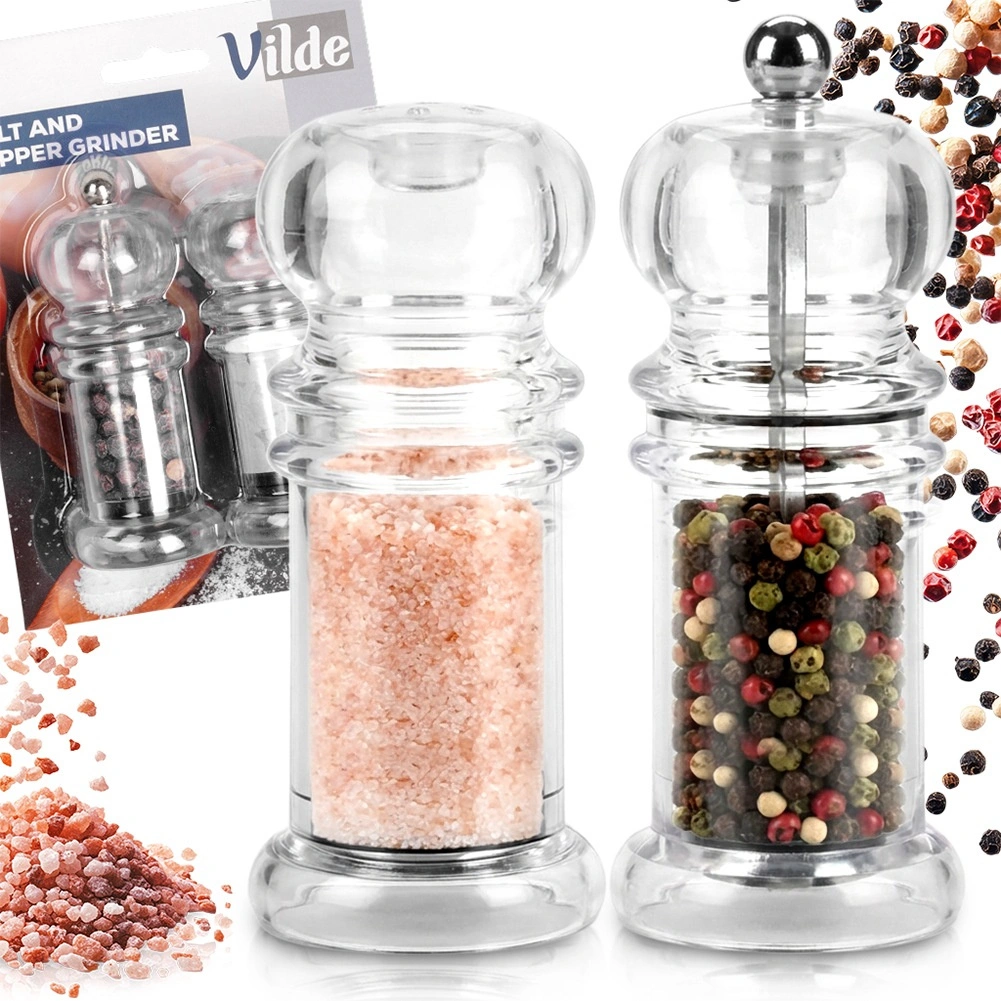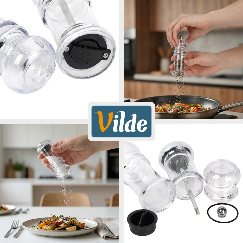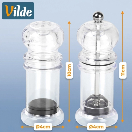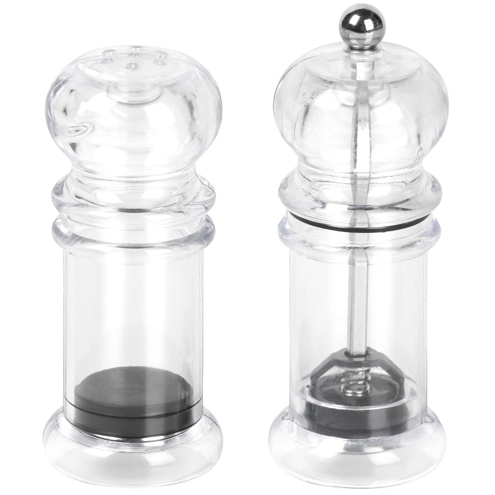 Dette elegante sæt kombinerer holdbart akryl med en keramisk kværnemekanisme for jævn maling, selv af hårdere peberkorn. Det transparente design giver øjeblikkelig kontrol over indhold og niveau. Takket være det tidløse udseende vil kværn og saltbøsse tage sig godt ud på spisebordet såvel som i professionel drift.
