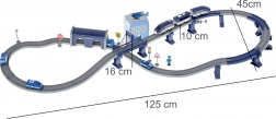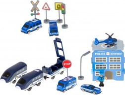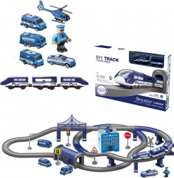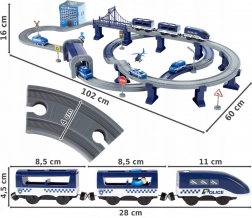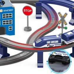 Denne detaljerede polititogbane forener børns favoritter – tog, biler, helikoptere og politi. Med det rige sæt kan du bygge op til 6 forskellige sporvarianter, inklusive to-etagers føring, bro og tunnel. Magnetiske koblinger gør håndteringen nem, og det motoriserede lokomotiv sikrer jævn kørsel.