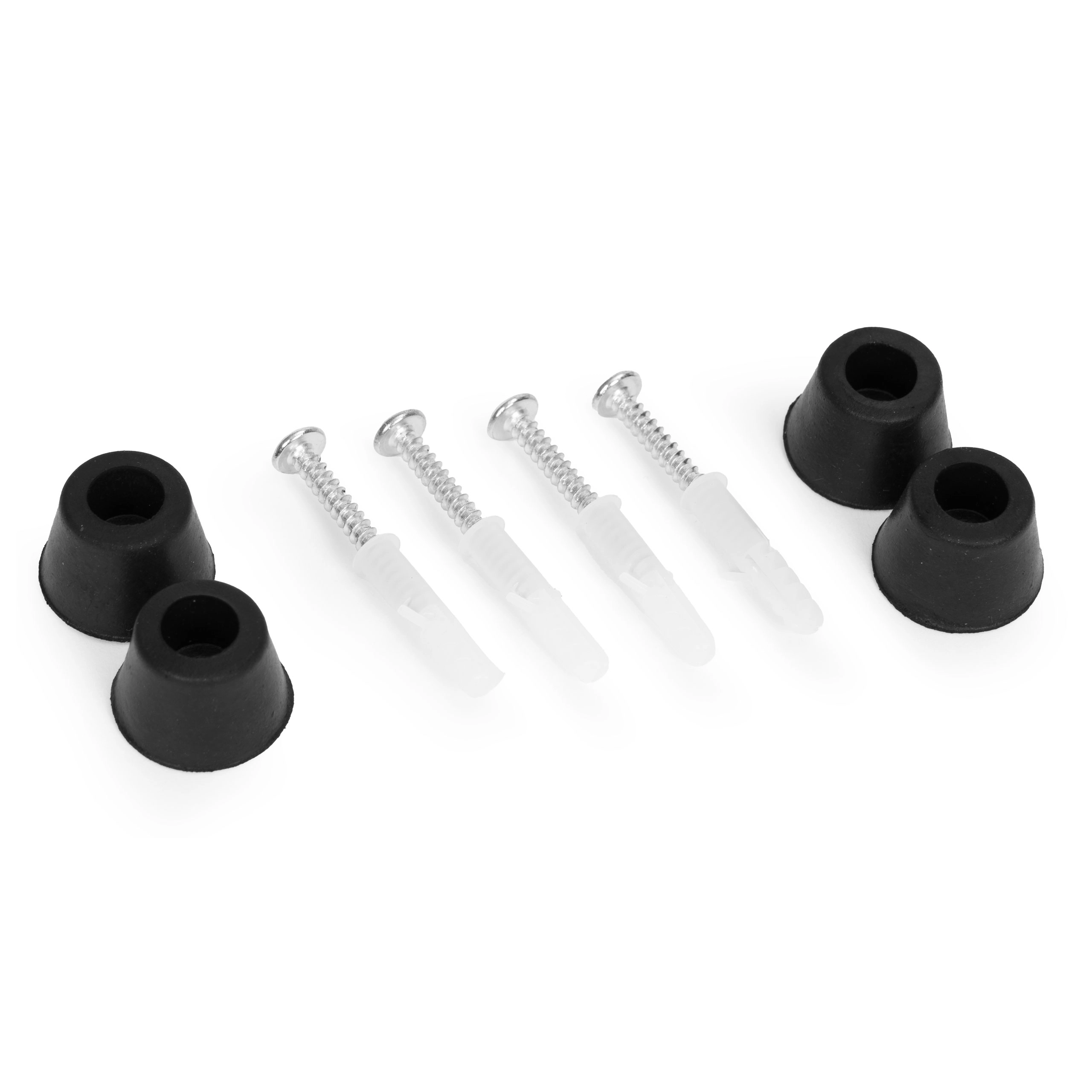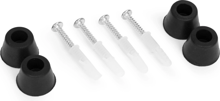I pakken finder du skruer, rawlplugs og gummiafstandsskiver til en hurtig, stabil og ventileret installation på enhver fast overflade.