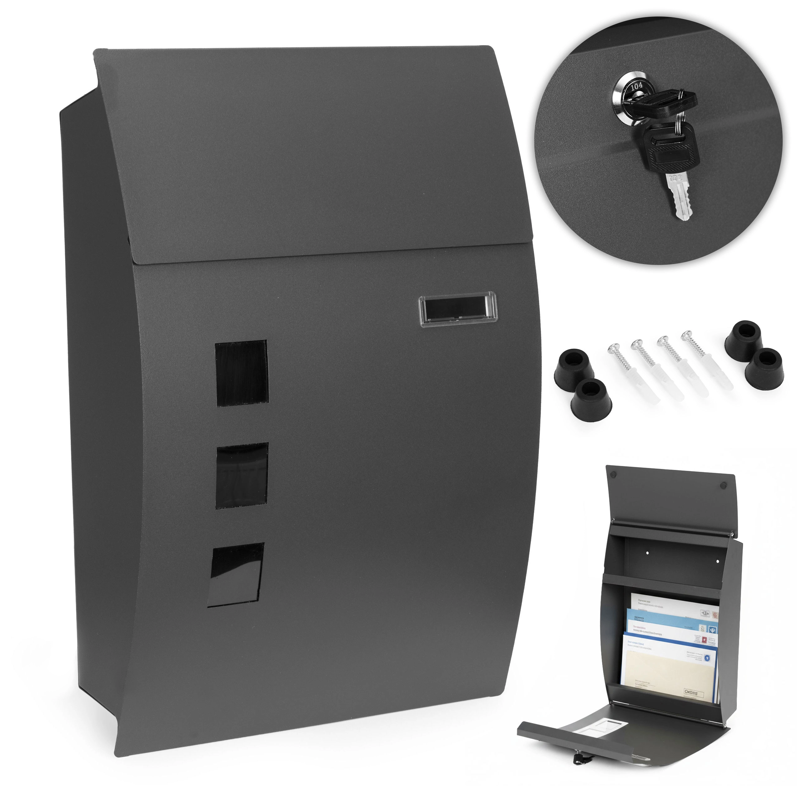Den integrerede lås med to nøgler beskytter din post. Tre gennemsigtige vinduer gør det muligt at tjekke for levering uden at åbne lågen.