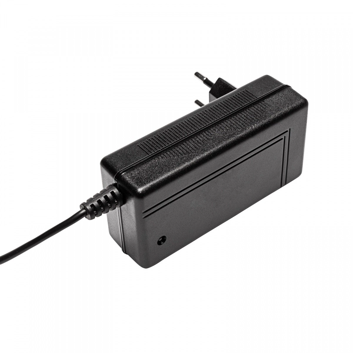 Adapteren leverer stabilt 26 V / 0,4 A, hvilket sikrer sikker og konsistent opladning af batteriet uden unødig opvarmning og effekttab.