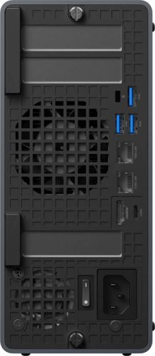 Brede udvidelsesmuligheder glæder professionelle: op til 256 GB DDR5 i fire SO‑DIMM-slots og 4× M.2 NVMe (PCIe 4.0/3.0) muliggør hurtige arrays med støtte for RAID 0/1/5/10. Netværksudstyret med 2× 25GbE SFP+, 10GbE RJ45 og 2,5GbE RJ45 (vPro) bringer industristandard til skrivebordsformat.