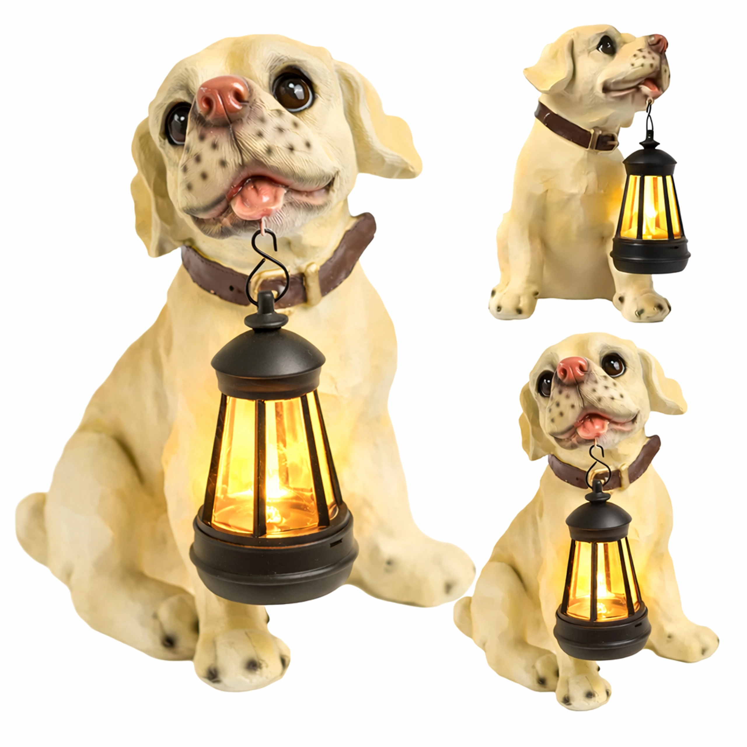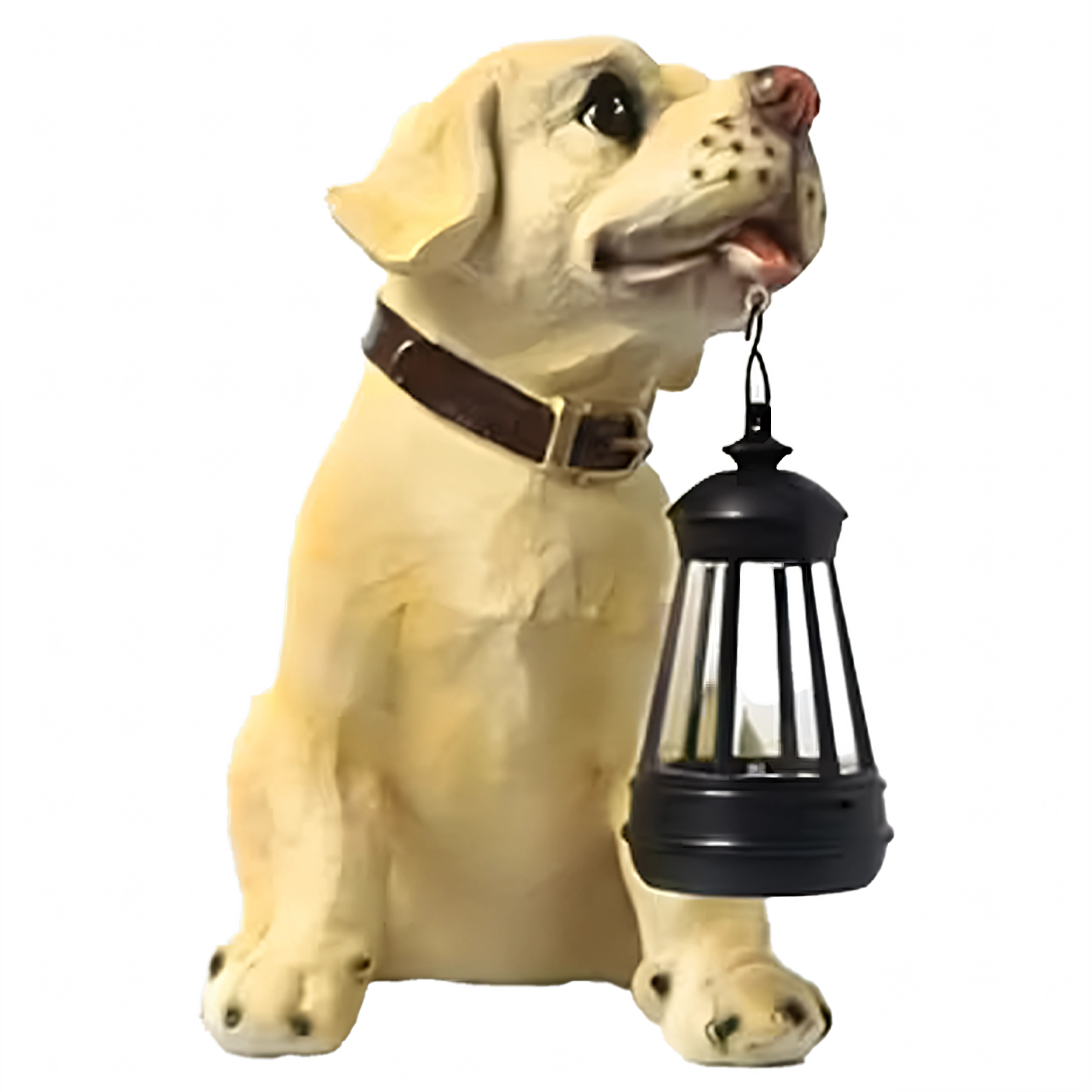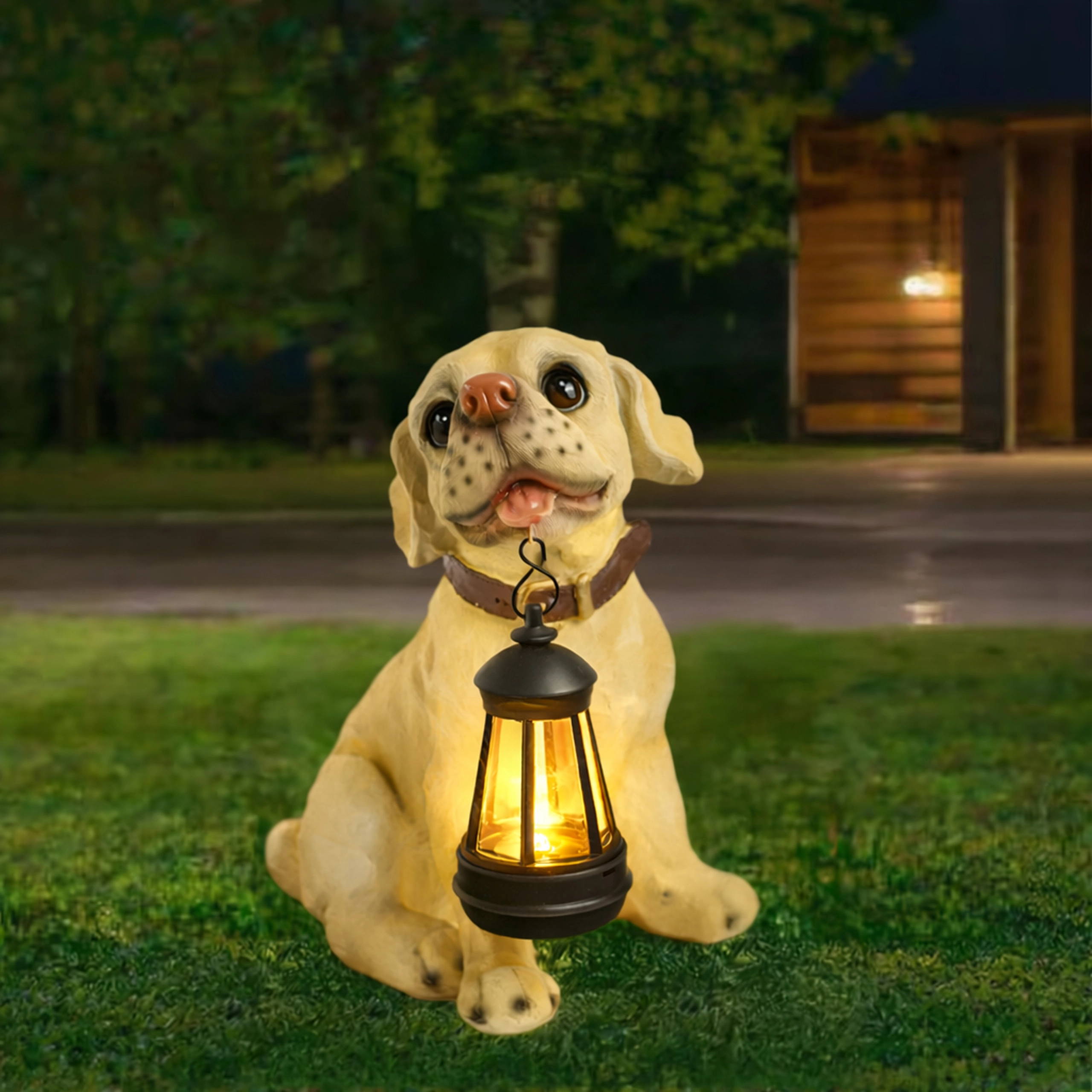 - Dekorativ havelampe – hundefigur med LED-lanterne