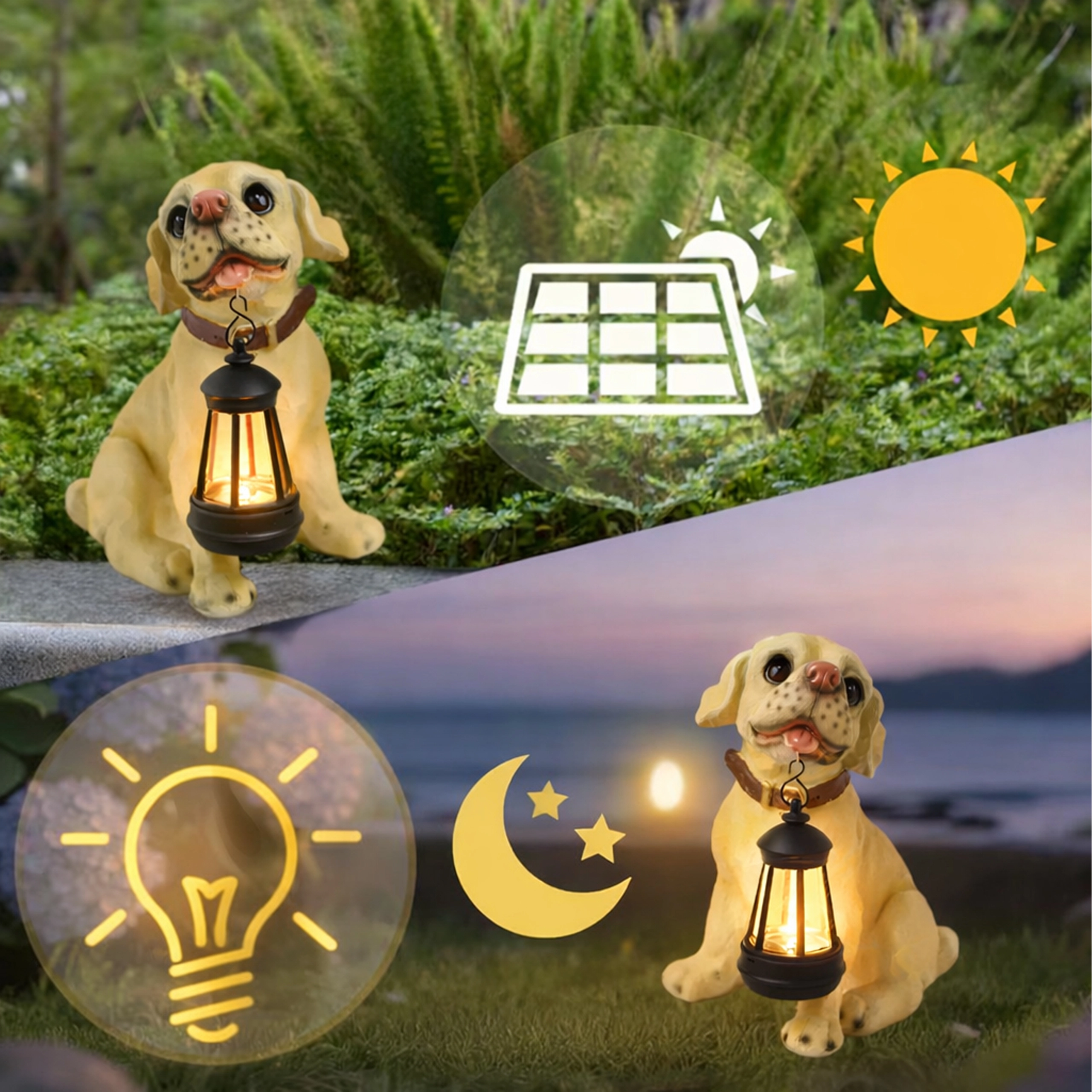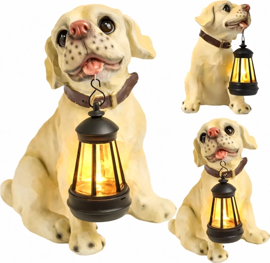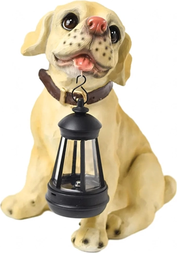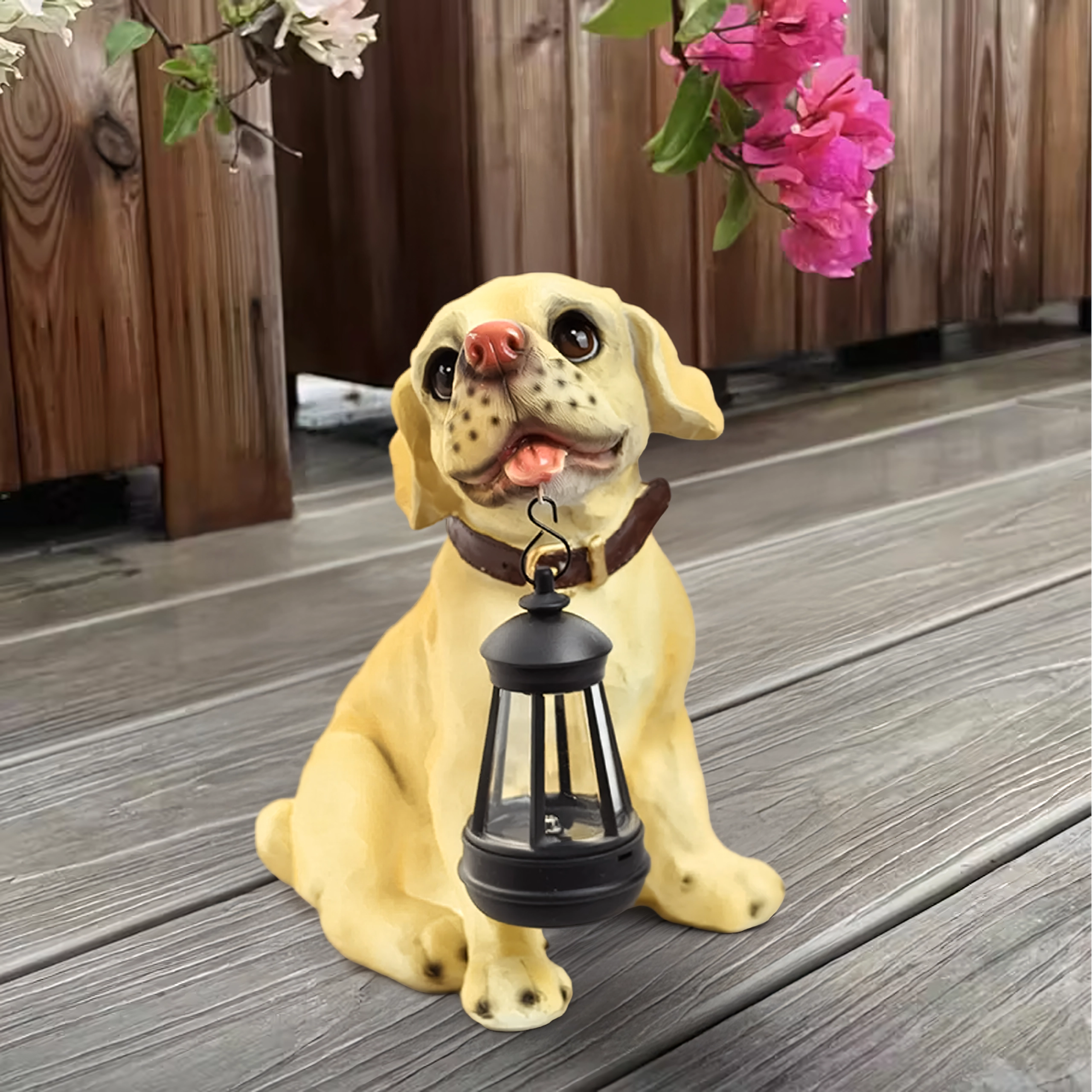 - Dekorativ havelampe – hundefigur med LED-lanterne