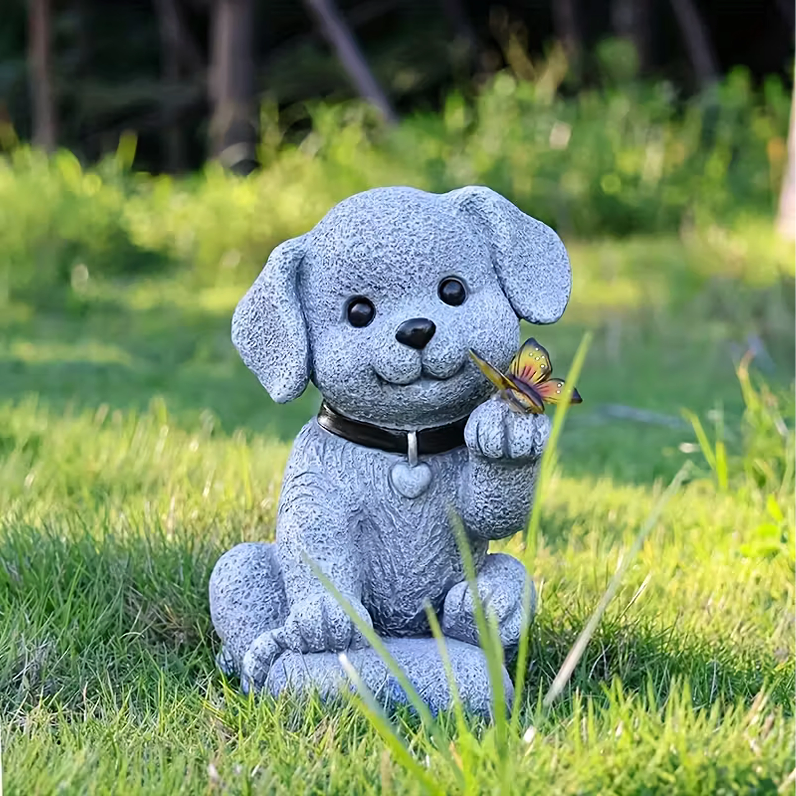 - Sød hund med sommerfugl-design – dekoration til hjem og have
