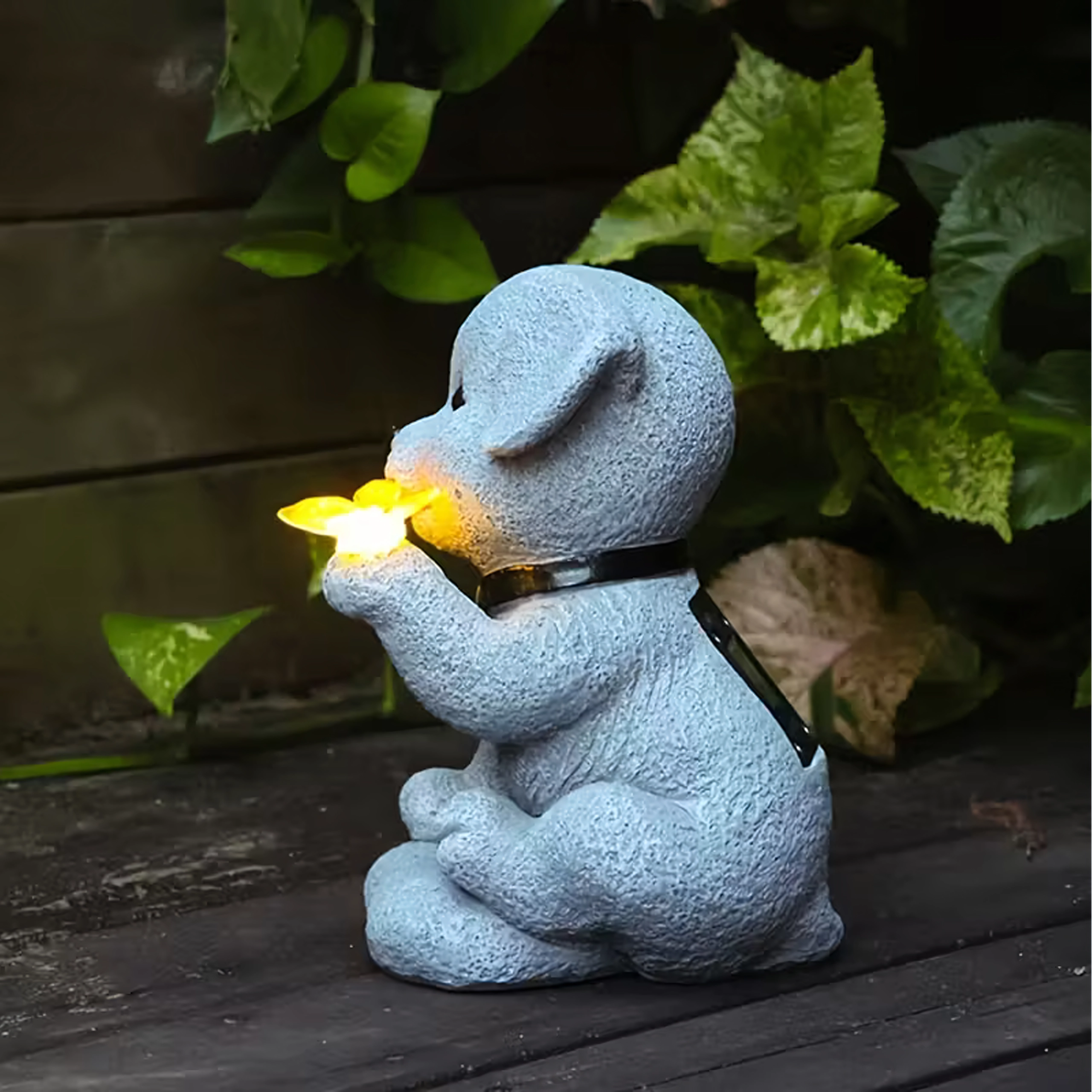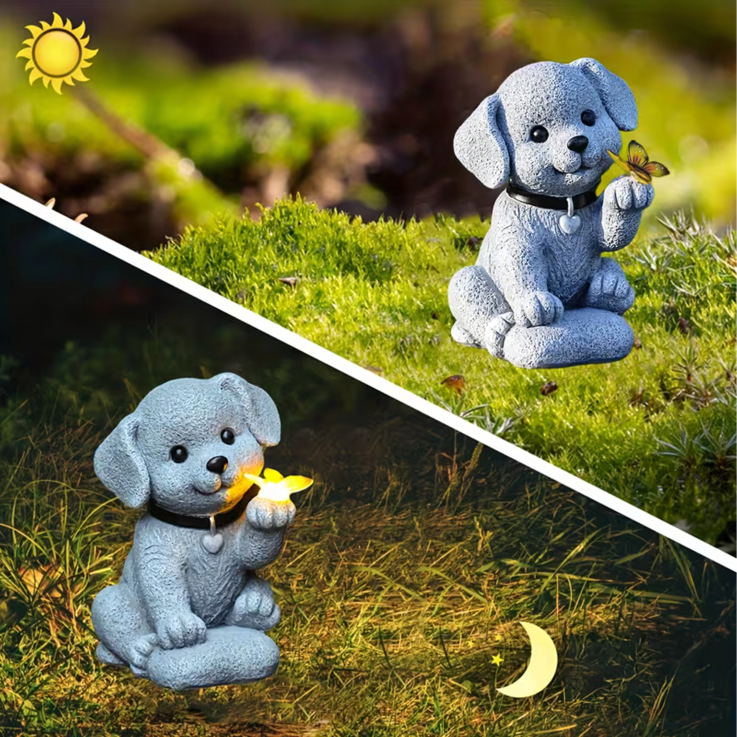 - Solcelledrevet dekorativ havelampe – hundefigur med sommerfugl