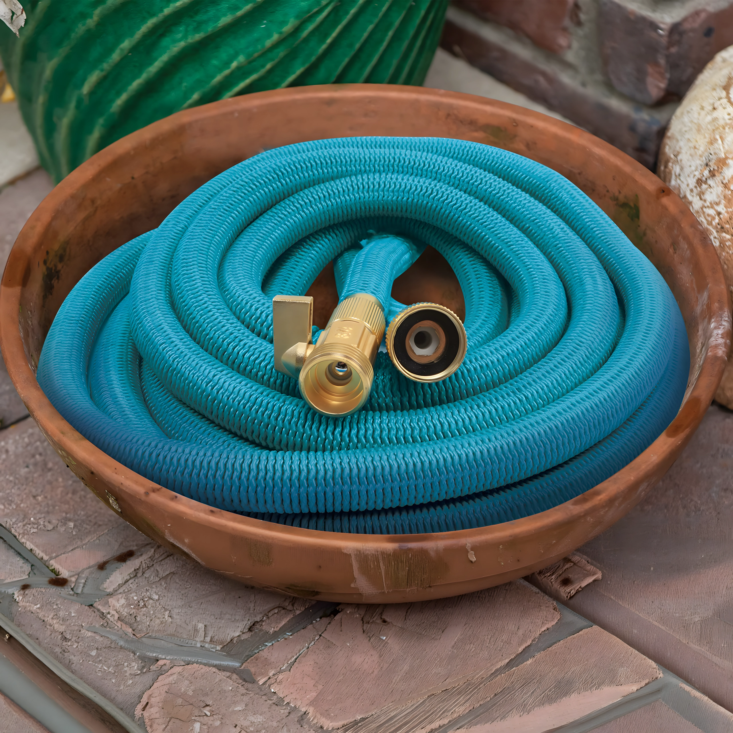 Nyd bekvem vanding med en fleksibel udtrækkelig slange, der ved åbning af for vand forlænger sig op til ca. 15 m og trækker sig kompakt sammen efter brug. Takket være den knækresistente fletning knækker eller snor den sig ikke, og messingkoblingerne giver en tæt og langtidsholdbar tilslutning.