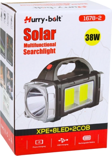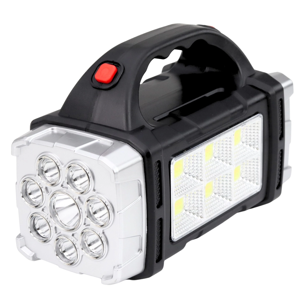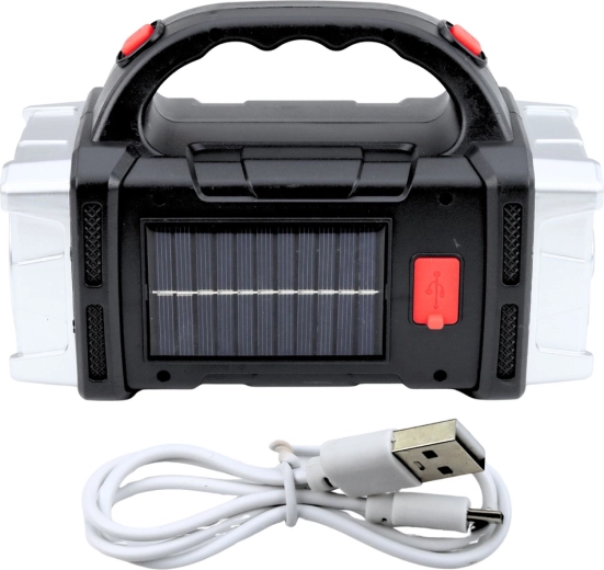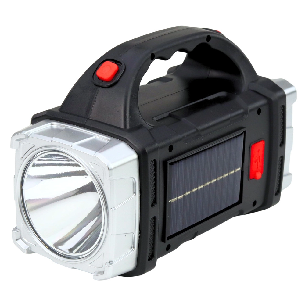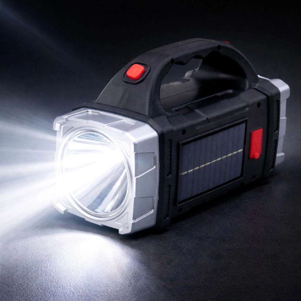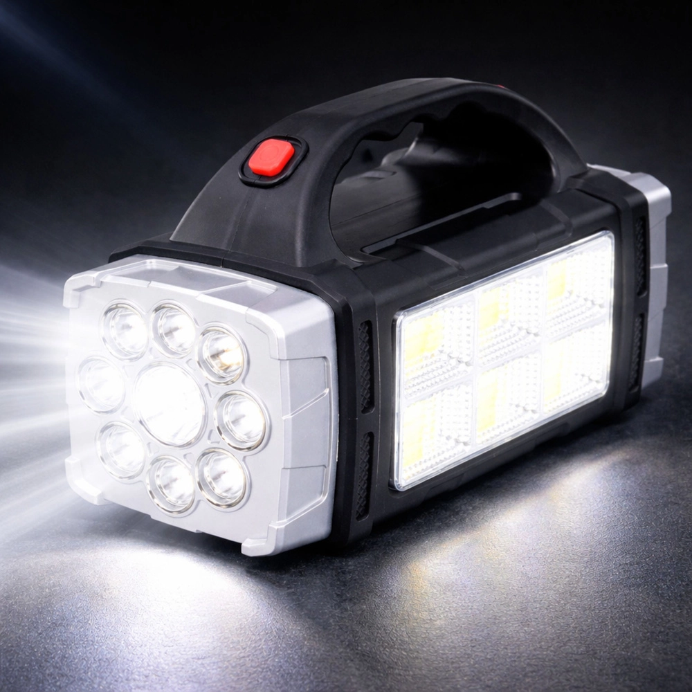Denne solcelledrevne multifunktionslygte kombinerer en kraftig spot med lang rækkevidde og et sidelæns COB-panel til omfattende arbejdsbelysning. Det ergonomiske håndtag og de kompakte mål gør den let at bære og ideel til daglig brug i værksted, garage, have eller på ture.