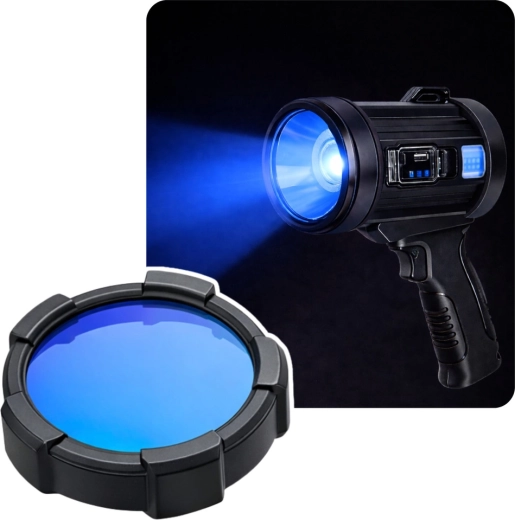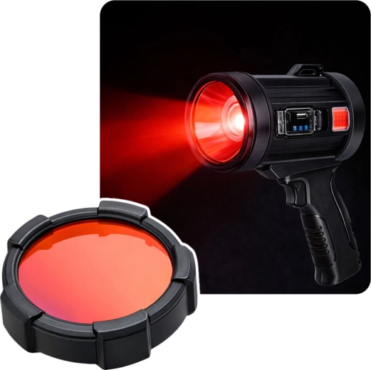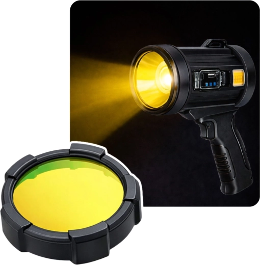 Det robuste design i ABS, det ergonomiske pistolgreb og de praktiske udskiftelige farvefiltre (rød, gul, blå) øger anvendeligheden – til taktiske formål, signalering, bedre synlighed i tåge eller beskyttelse af nattesyn.