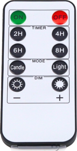 Der medfølger en fjernbetjening med tænd/sluk, lysdæmpning og timer (2/4/6/8 t), så du nemt kan tilpasse stemningen – fra aftenafslapning til en festlig middag. Energibesparende LED sikrer lang driftstid på almindelige AA-batterier.