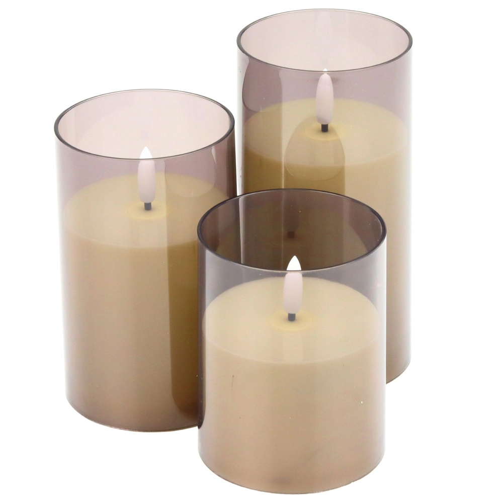 Skab hyggeligt lys med et enkelt klik. LED-lysene med varm gul tone efterligner en ægte flamme og er samtidig helt sikre – uden sod, røg og brandfare. De forskellige højder gør det muligt at lave stilfulde dekorative arrangementer som sæt eller enkeltvis i forskellige rum.