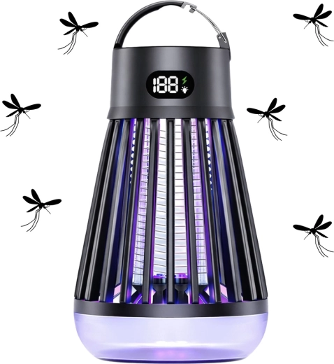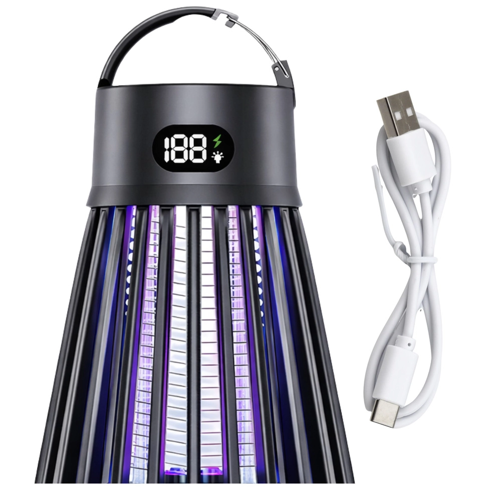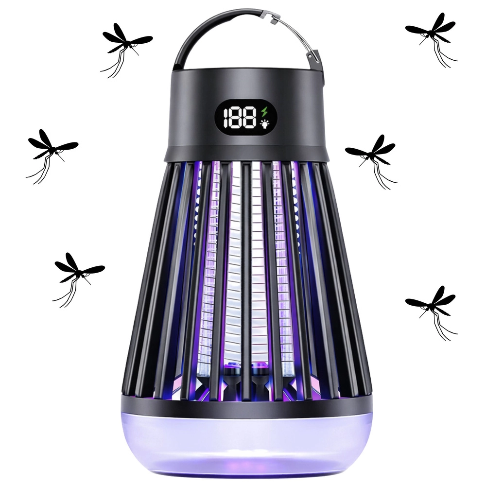 Praktisk og moderne lampe mod myg og flyvende insekter kombinerer UV-tiltrækning (365/395/410 nm) og et elektrisk gitter på 2000 V for hurtig bekæmpelse. Med integreret LED-lampe, opladeligt 2000 mAh-batteri op til 9 timers drift og USB‑C-opladning er den ideel til hjemmet, terrassen, altanen og camping. Uden kemi, med beskyttelsesgitter og et tydeligt digitalt display for status.