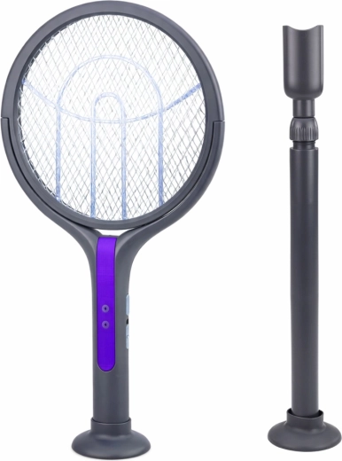 Den elektriske 2‑i‑1 fluesmækker er en smart løsning til hurtig og hygiejnisk bekæmpelse af flyvende insekter. Brug den som en håndholdt elektrisk ketsjer for øjeblikkelig nedslagning, eller placer den i basen og lad den fungere som en lampe, der tiltrækker og eliminerer insekter. Det drejelige hoved med låsefunktion forbedrer præcisionen under forskellige vinkler – på vægge, lofter og i hjørner.