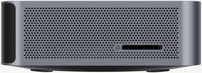 Den indbyggede SD-kortlæser gør import af medier nem, og det perforerede chassis understøtter luftgennemstrømning for stille og driftssikker funktion.