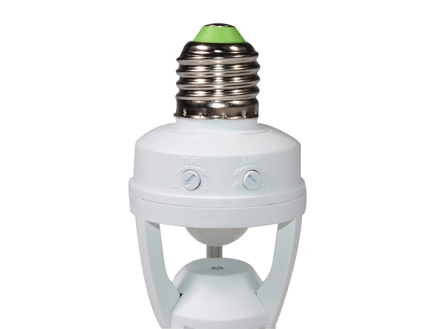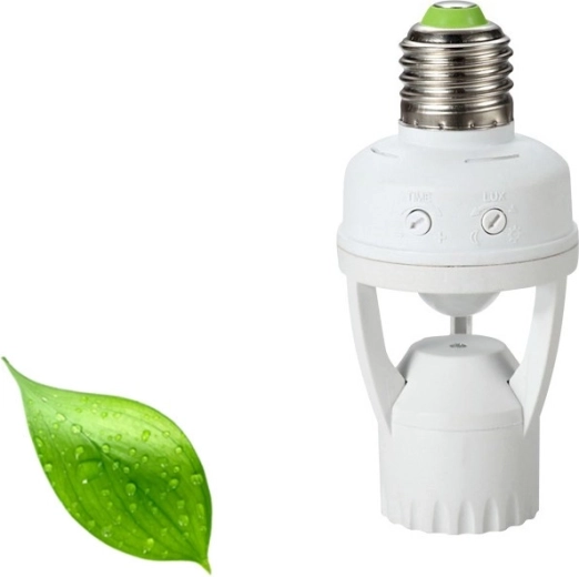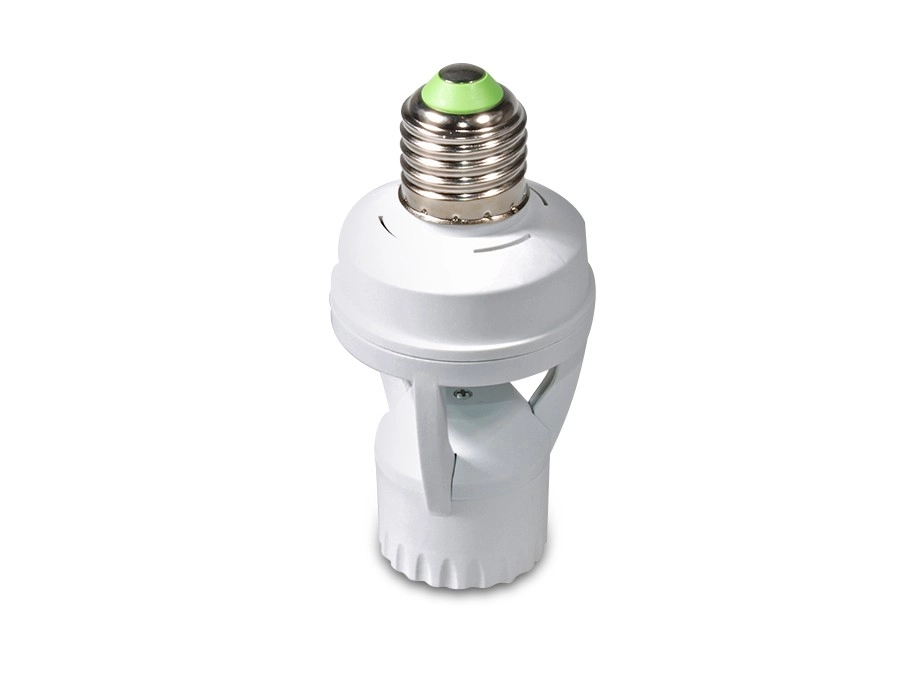 Automatisér belysningen uden afbryder med den smarte E27-fatning med 360° skumrings- og bevægelsessensor. Nem installation, justerbar lystid og energi-besparelse til gange, kældre, garager og lagerrum.