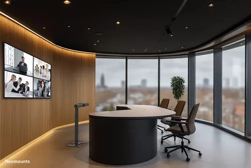 Det universelle gulvstativ til videobar NEOMOUNTS AV80-500BL tilbyder maksimal placeringsfleksibilitet, justerbar højde og en bæreevne på op til 10 kg. Ideelt til mødelokaler og Microsoft Signature Teams Rooms (Front Row), sikrer optimal synlighed og en professionel præsentation af din videobar, PTZ‑kamera eller soundbar (inklusive Logitech Rally).