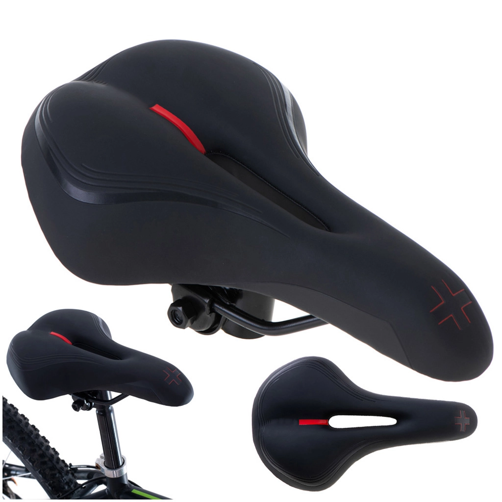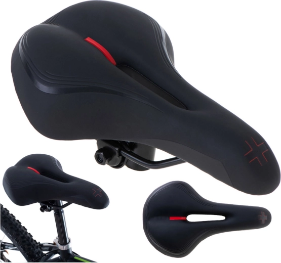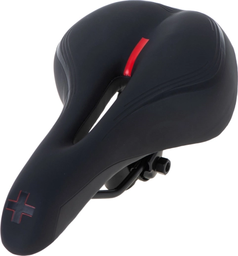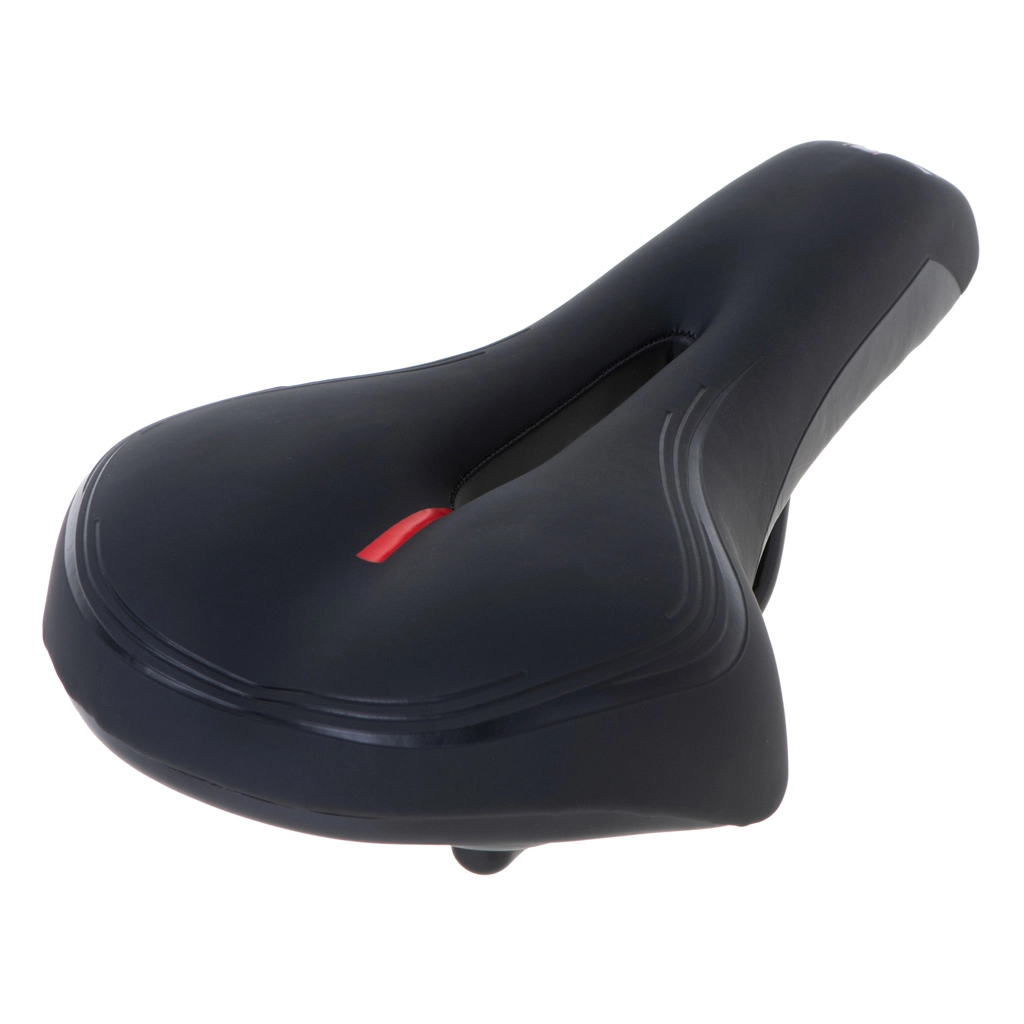 Det sportslige sadel er designet til ryttere, der ønsker komfort og ydeevne på både korte og lange ture. Elastisk skum er hverken for blødt eller for hårdt – det giver stabil støtte og dæmper ujævnheder. Det anatomiske udskær i midten mindsker tryk, forbedrer ventilationen og øger komforten på længere køreture.