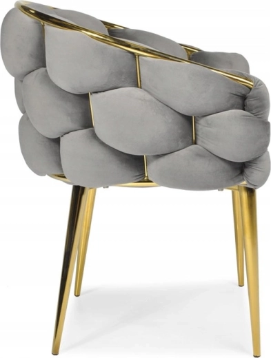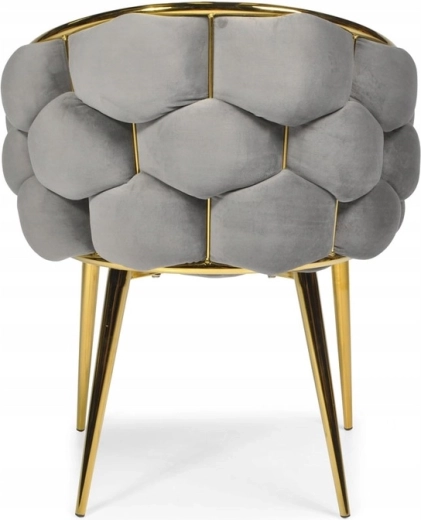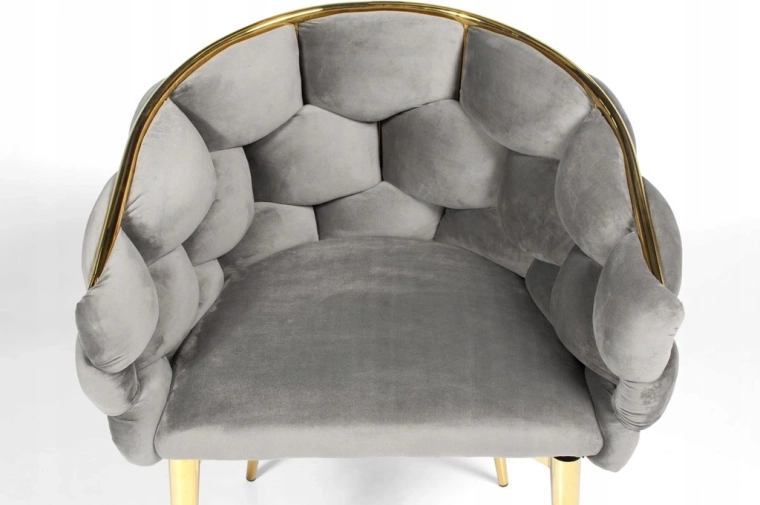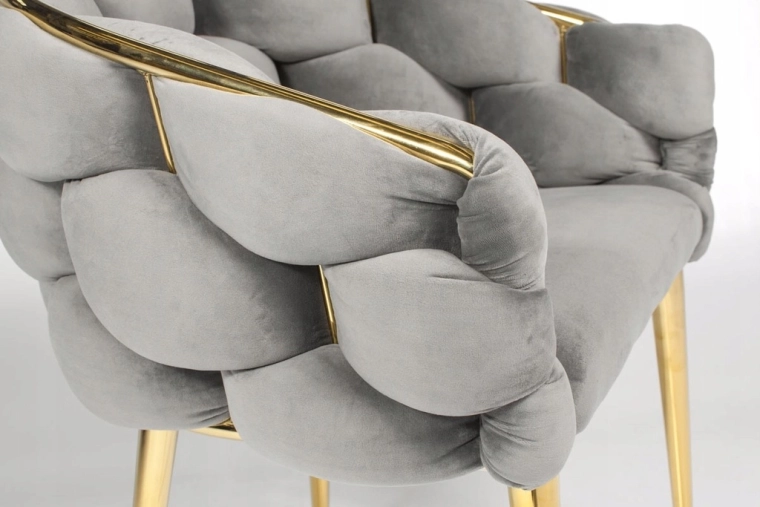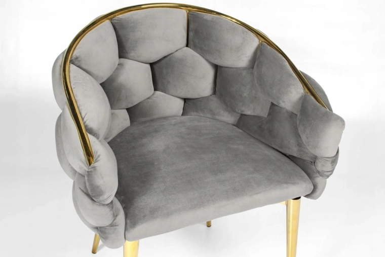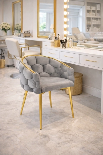 Den elegante FERTONE BALLOON stol forener luksuriøs velour, behagelig lænestolsform og guldfarvede metalben til et stilfuldt sæde til spisestuen, stuen eller makeup-bordet. Blød polstring, omsluttende ryglæn og den universelle grå farve sikrer komfort og nemt match med et moderne interiør. Bæreevne op til 100 kg og nem vedligeholdelse til daglig brug.