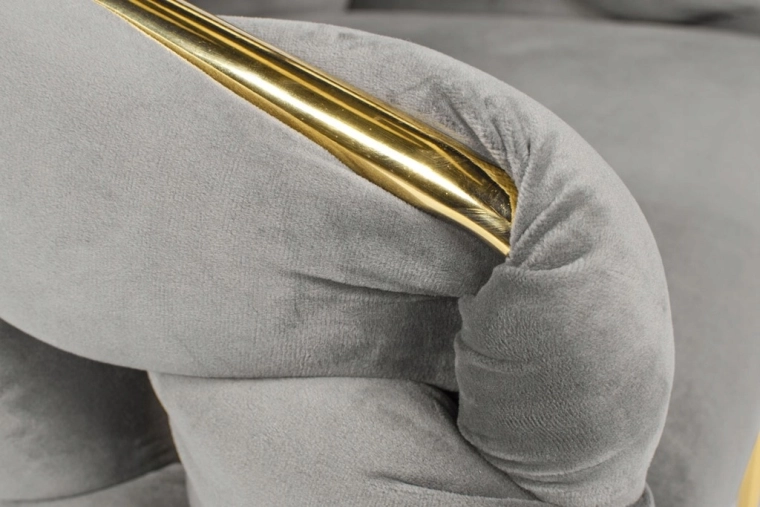 Slanke metalben og guldfarvede detaljer giver interiøret et luksuriøst præg og matcher perfekt den grå velour.