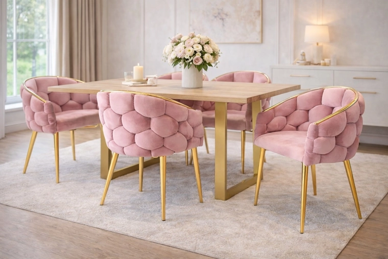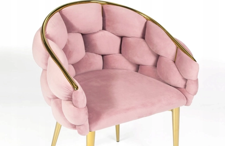 - Glam-design: kombination af rosa velour og gyldent stål