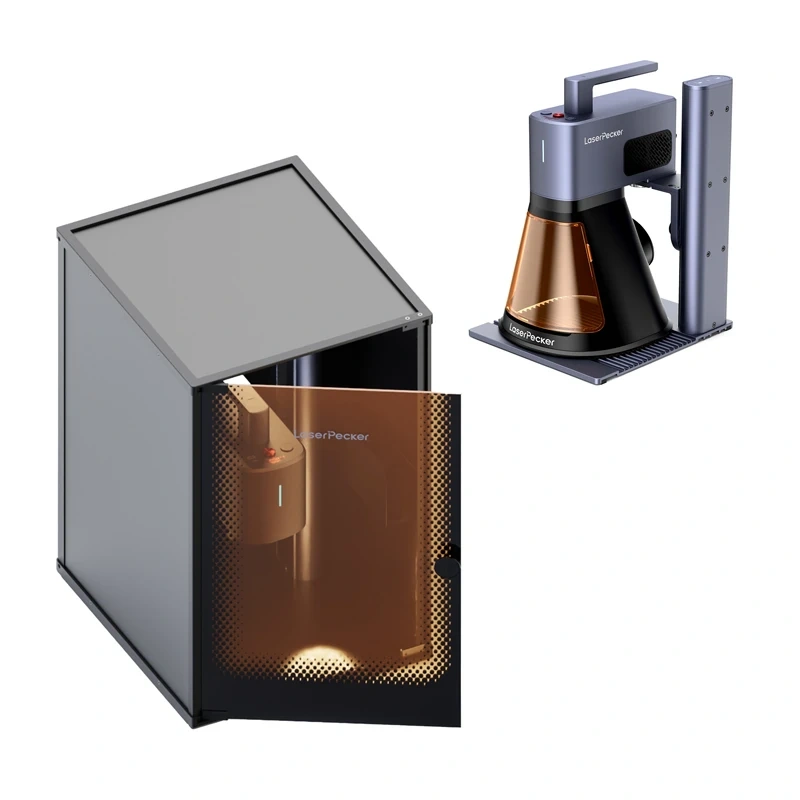 Safeguard-sikkerhed: Beskyttelseskabinet med magnetisk filter og åbningssensor, nødstopknap, effektiv røggasudsugning og kompatibilitet med luftrenser. Intuitiv software LaserPecker Design Space (iOS/Android/Windows/macOS) og support for LightBurn sikrer et gnidningsfrit workflow fra forhåndsvisning til færdig gravering.