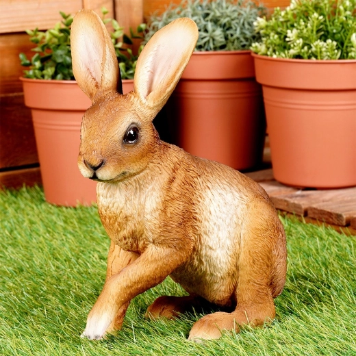 Denne dekorative kaninfigur er designet til naturligt at passe ind i både grønne haver og moderne udemiljøer. Præcis udførelse og livlige farver efterligner et ægte dyr, så den straks bliver et blikfang i dit område.