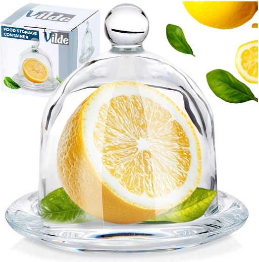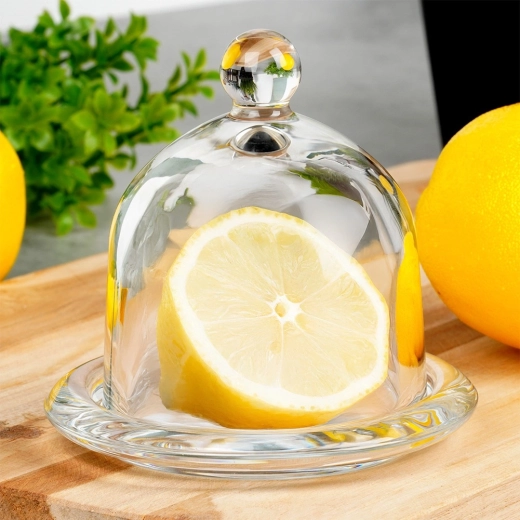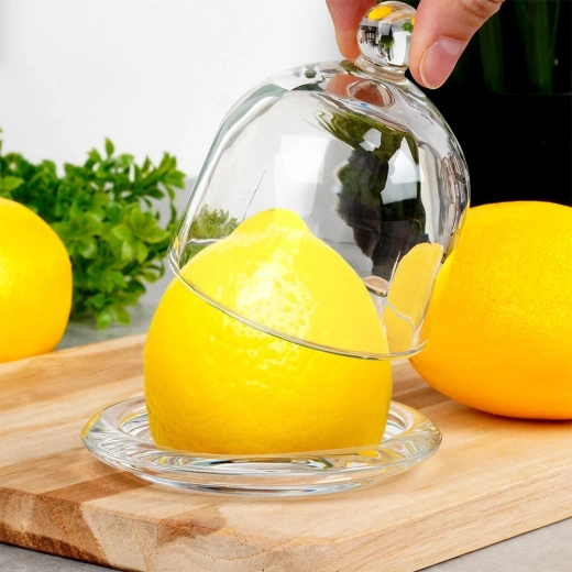 Klokken af robust glas forhindrer udtørring og hjælper med at bevare saftighed og aroma i citrusfrugter og andre små fødevarer.
