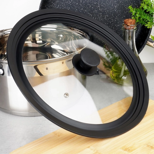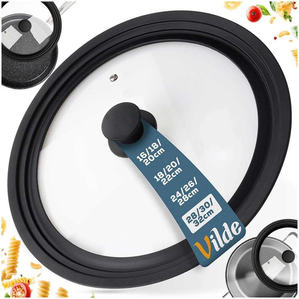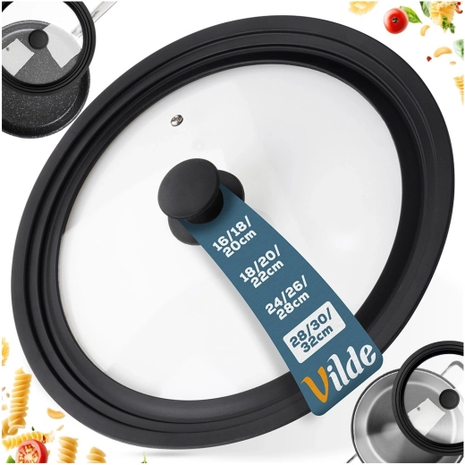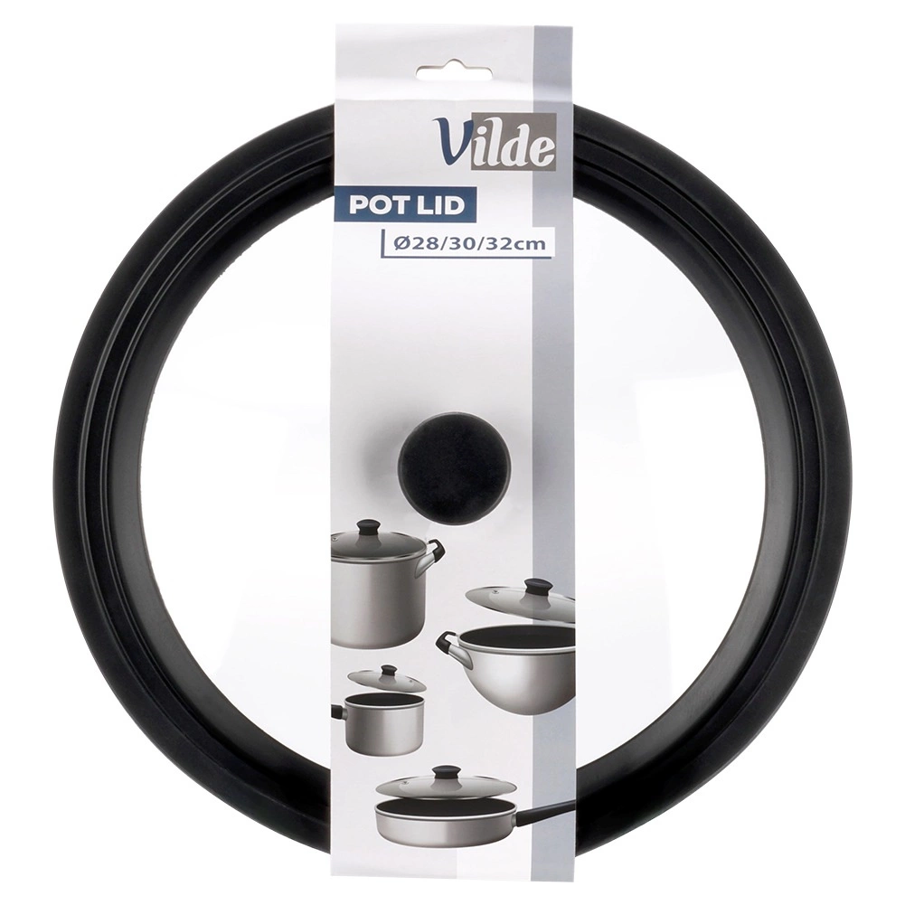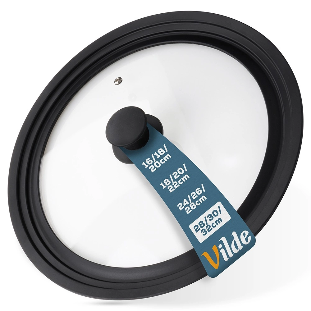 Leder du efter ét låg, der passer til flere stykker kogegrej? Dette universelle 3-i-1 låg dækker diametre på 28, 30 og 32 cm. Det gennemsigtige hærdede glas lader dig holde madlavningen under kontrol, mens den brede silikonekant sikrer perfekt tætning og beskytter kanterne på gryder og pander mod skader.