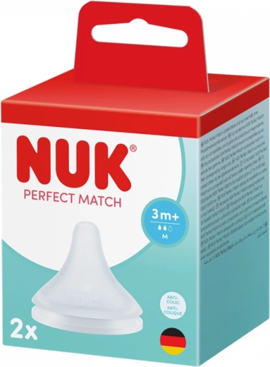 Takket være den antikolik-ventil og den glat tilspidsede form sikres en jævn og uforstyrret gennemstrømning, som hjælper med at reducere luftslugning og maveubehag. Sutterne er kompatible med tilbehør til NUK Perfect Match og NUK Soft&Easy brystpumper og opfylder den europæiske standard EN 14350.