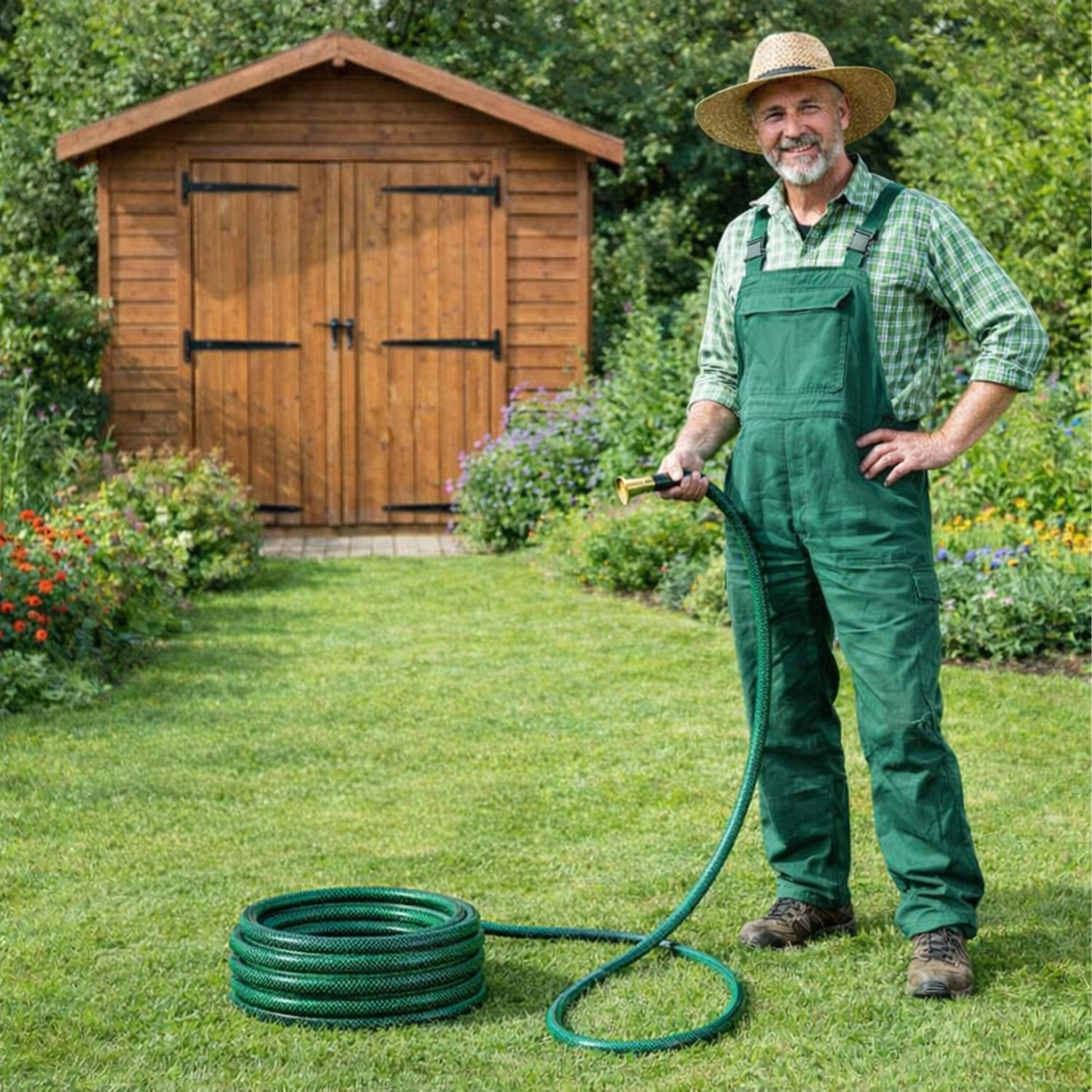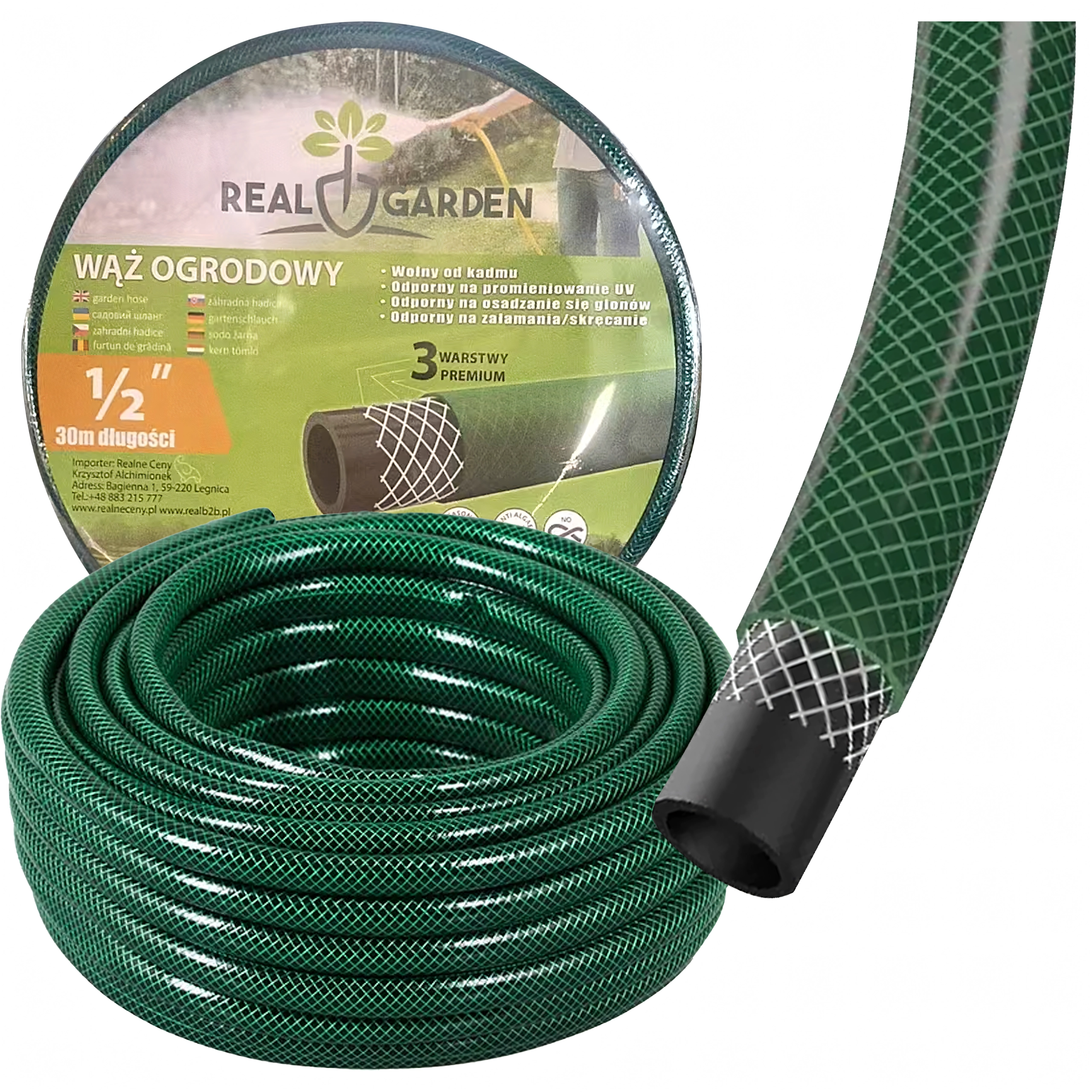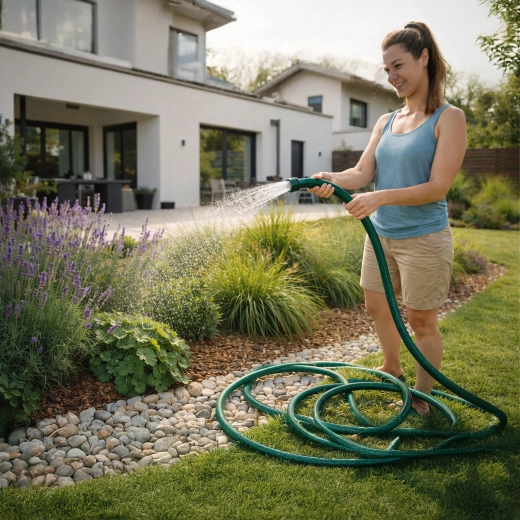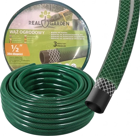 Praktisk haveslange på 30 m med en diameter på 1/2" og 3-lags konstruktion, som sikrer høj holdbarhed, fleksibilitet uden knæk og pålidelig vandgennemstrømning til daglig vanding af haven, bilvask og rengøring omkring huset.