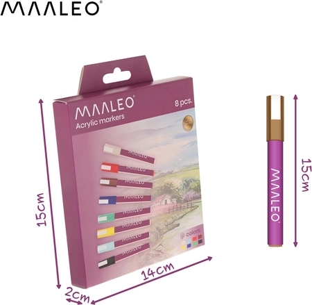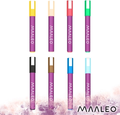 MAALEO akrylmarkører kombinerer komforten ved en tusch med effekten af ægte akrylmaling. Skab let mættede flader, kontrastfyldte konturer og fine detaljer uden pensler og rod. Ideelle til papir, træ, plast, tekstil, glas, metal, sten og keramik – malingen bløder ikke igennem og er modstandsdygtig over for vand og slid efter tørring.