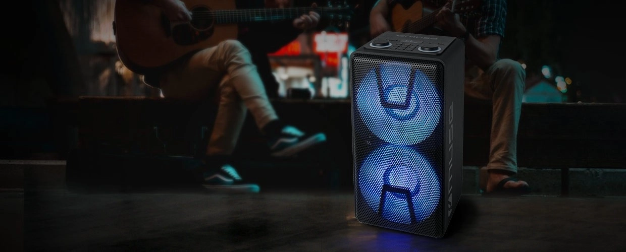 Takket være det indbyggede Li-ion-batteri 1500 mAh / 7,4 V kan du nyde musikken uden stikkontakt. Til liveoptrædener eller karaoke er der MIC-indgang og guitarindgang, mens 3,5 mm AUX in giver klassisk kabeltilslutning. Funktionen stereoparring gør det muligt at forbinde to kompatible højttalere og skabe en bredere, mere rummelig lydscene.