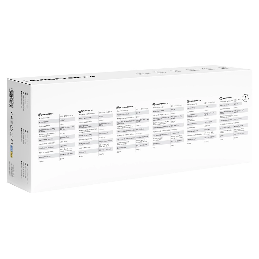 - Laminator LR-01/B, startsæt med lamineringslommer: 10× A4, 5× A5, 5× A6