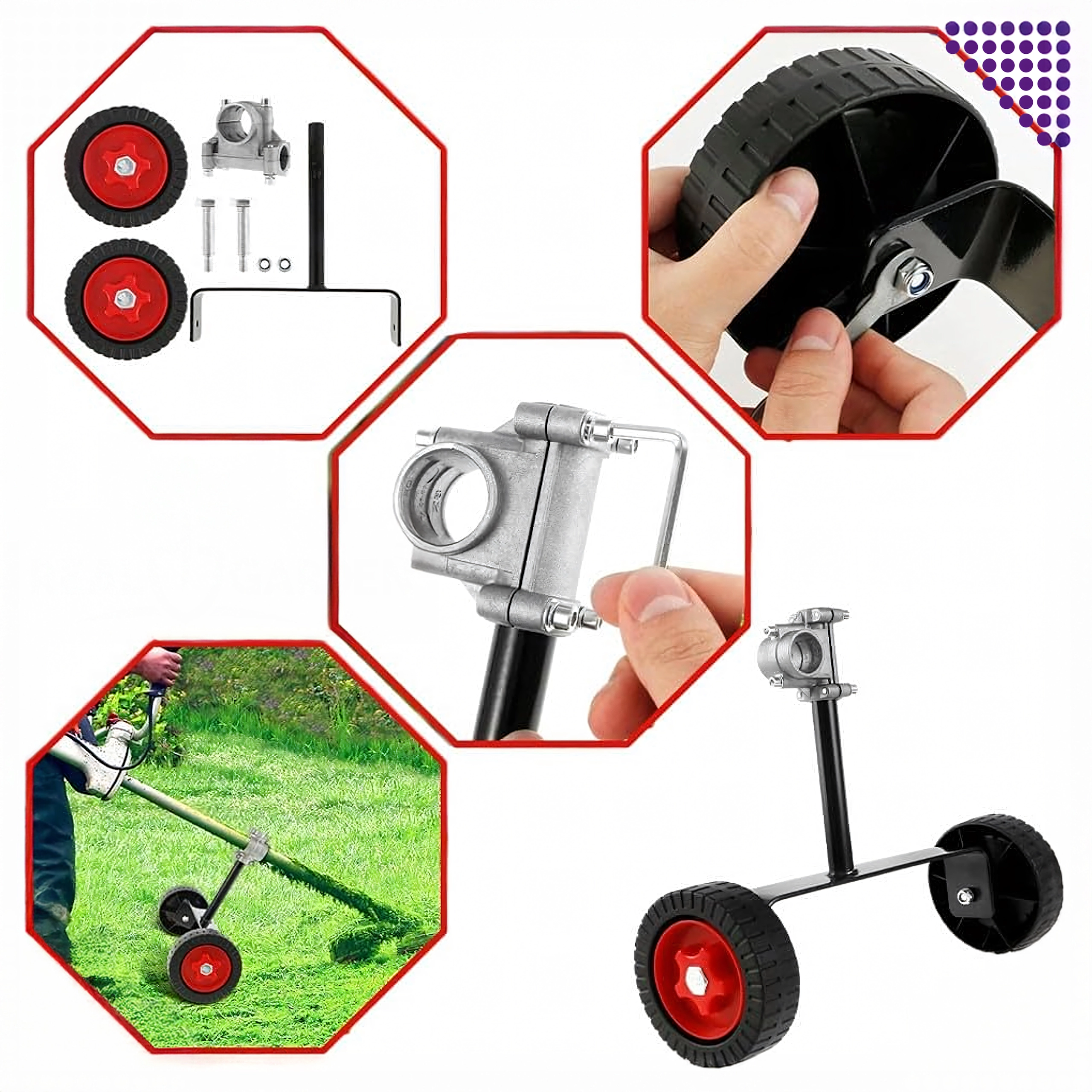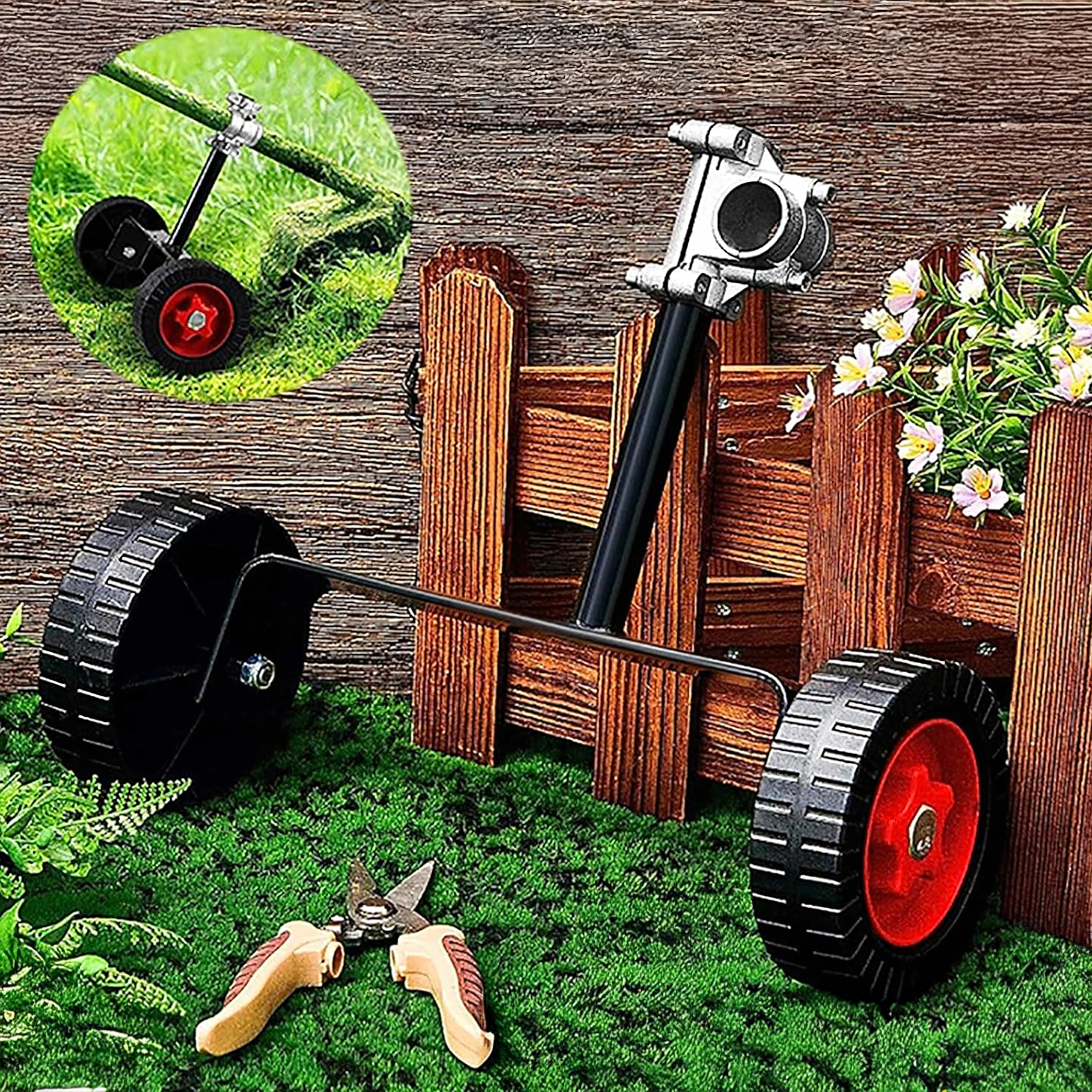 Gør græstrimningen lettere med dette praktiske tilbehør – universelle hjul til buskrydder/trimmetrådsklipper. Med spændebeslag til rørdiameter 26–28 mm får du stabil styring, jævn klipning og mindre belastning af hænder og ryg. Den robuste konstruktion og de kraftige hjul sikrer glidende bevægelse på plænen samt langs kantsten og hegn.