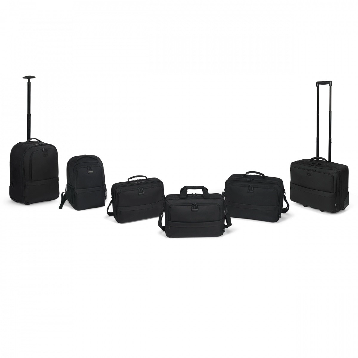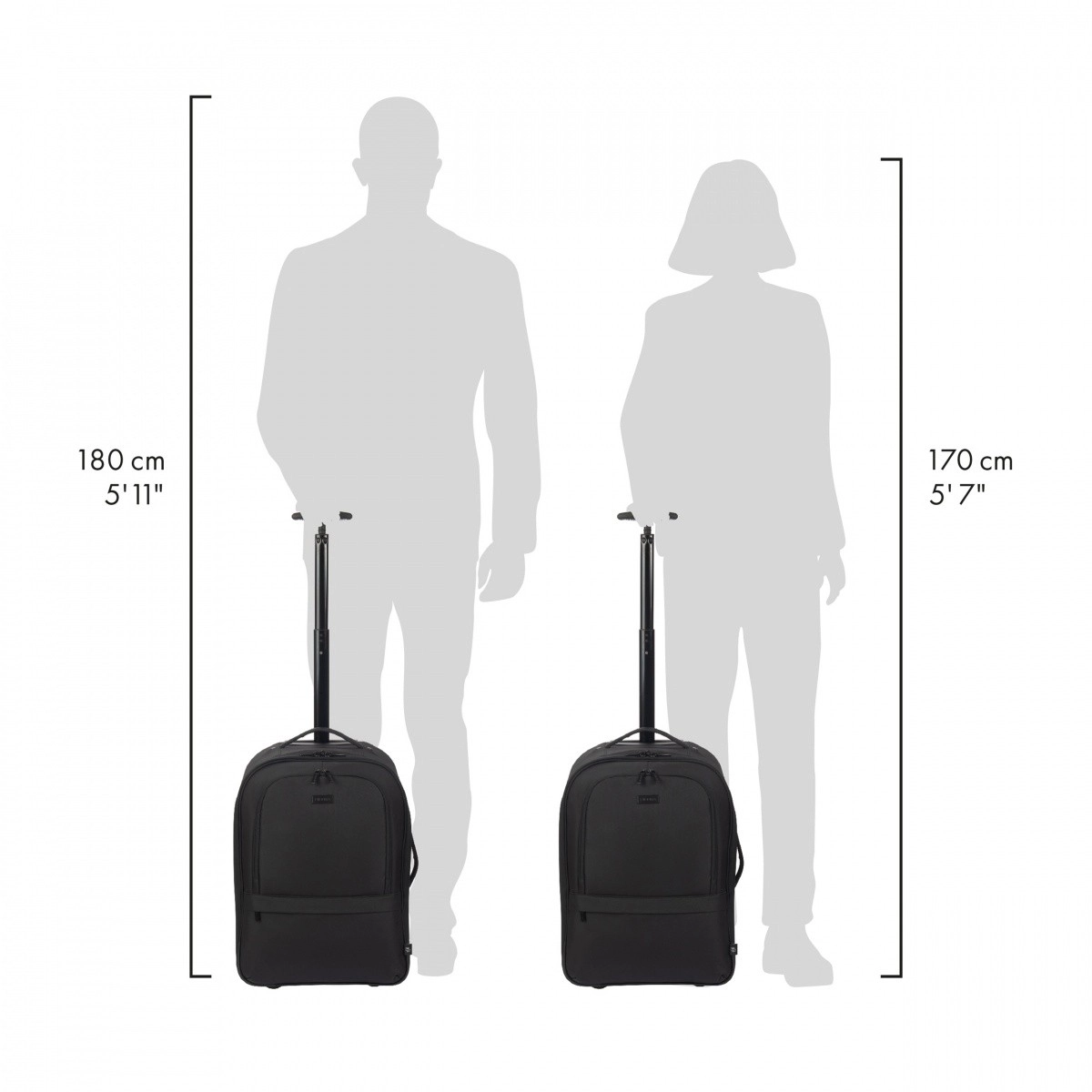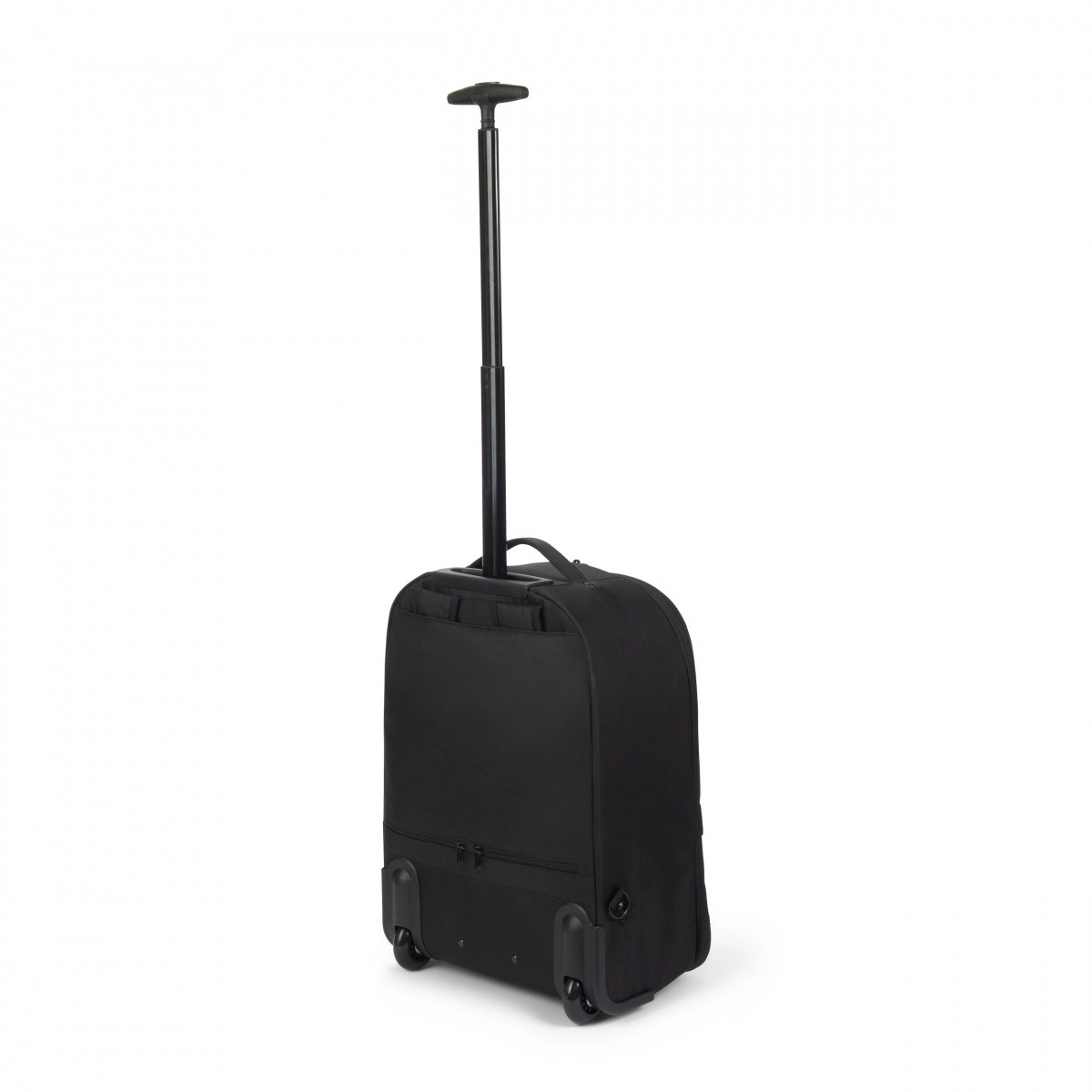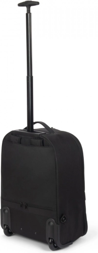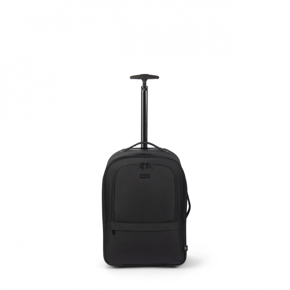 Teleskophåndtag, slidstærke hjul samt side- og top-håndtag gør transporten let. Skjulte stropper muliggør hurtig skift fra rygsæk til trolley.