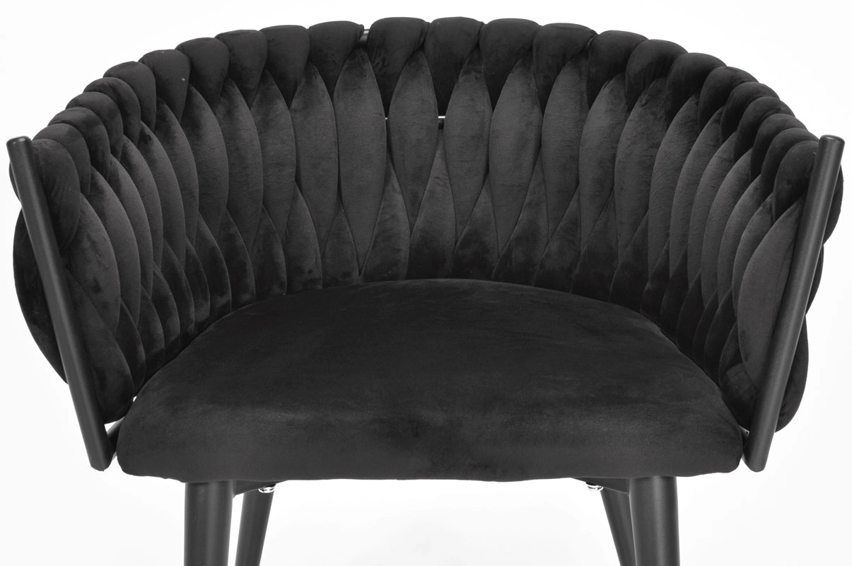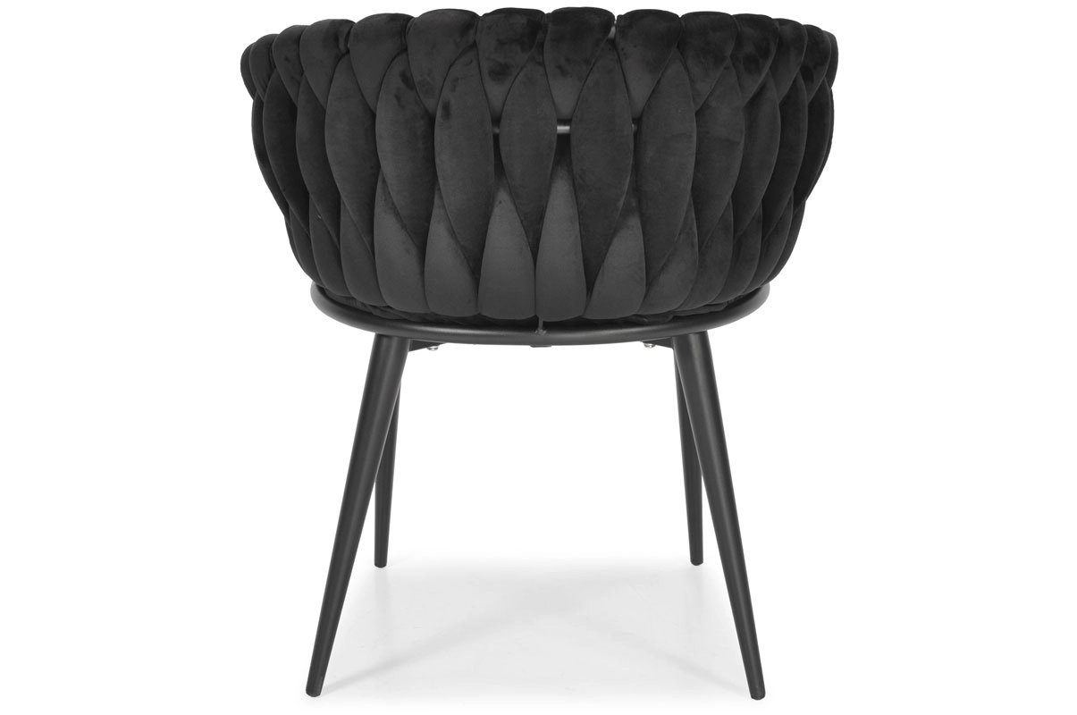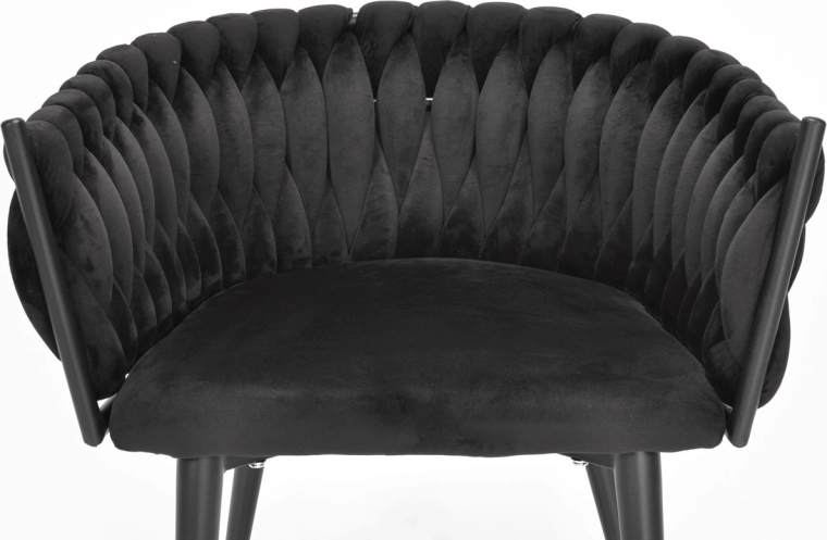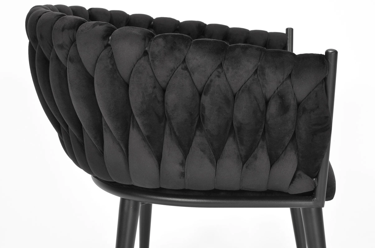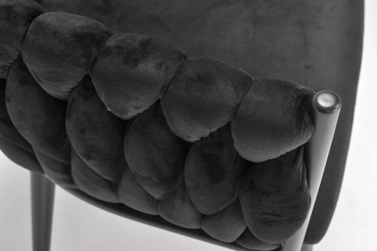 Den dekorativt flettede bagdel i blød velour giver ROSA-stolen et unikt udseende og en premium charme, der fanger blikket med det samme.