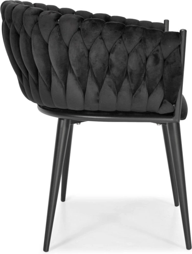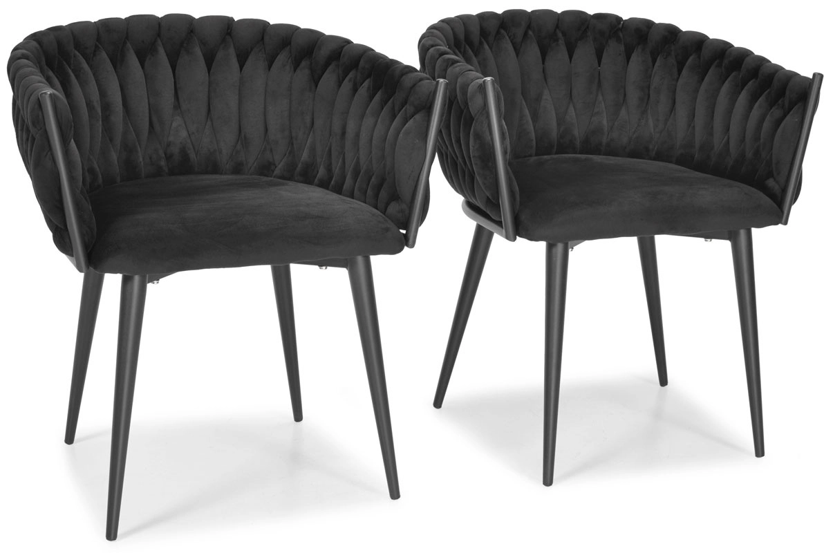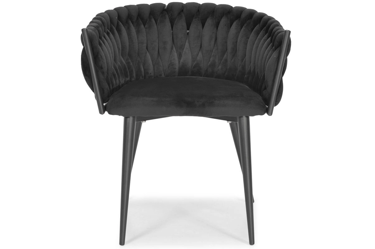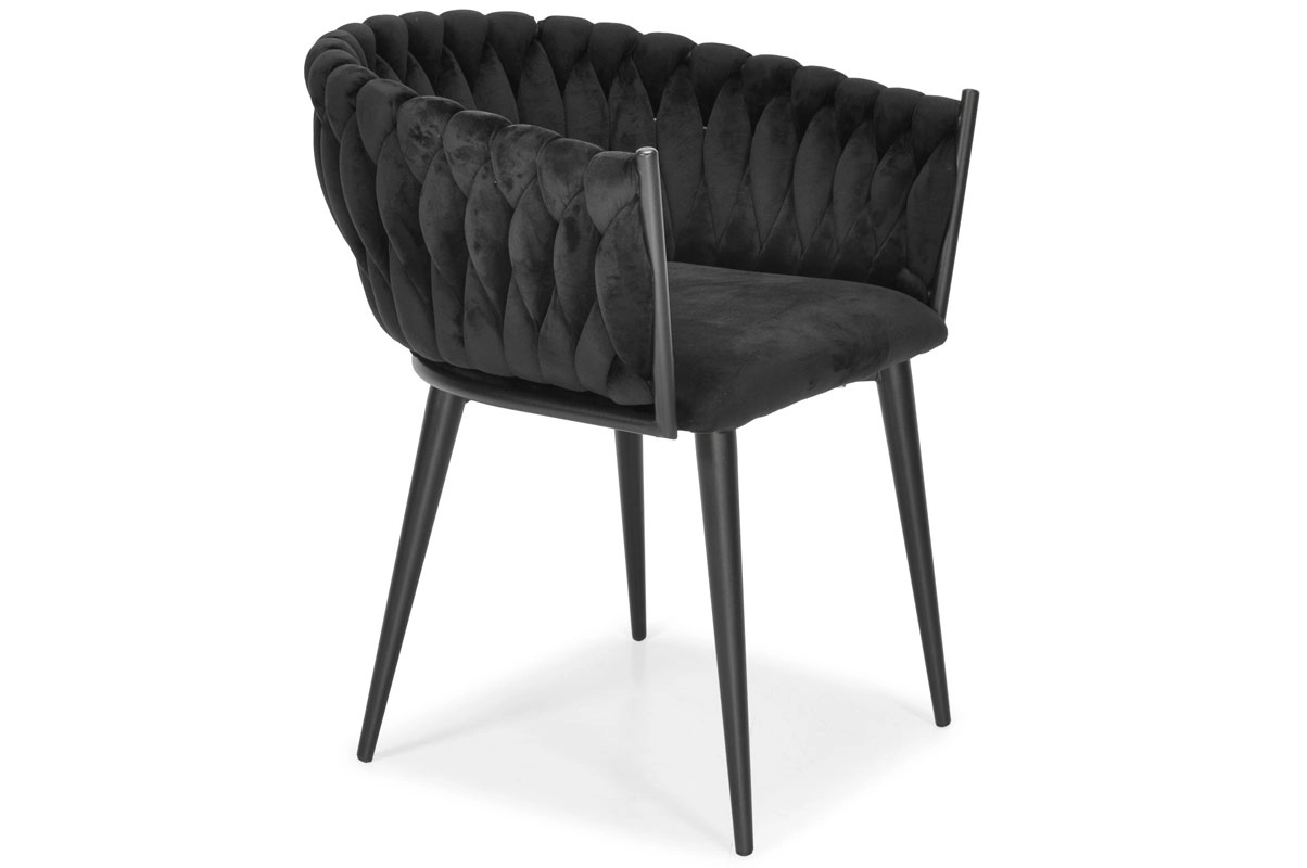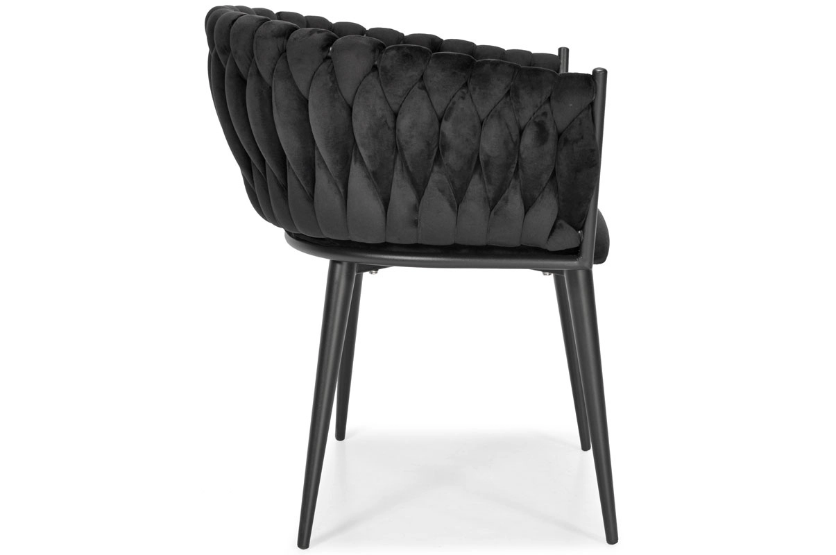 Den dekorativt flettede bagdel i blød velour giver ROSA-stolen et unikt udseende og en premium charme, der fanger blikket med det samme.