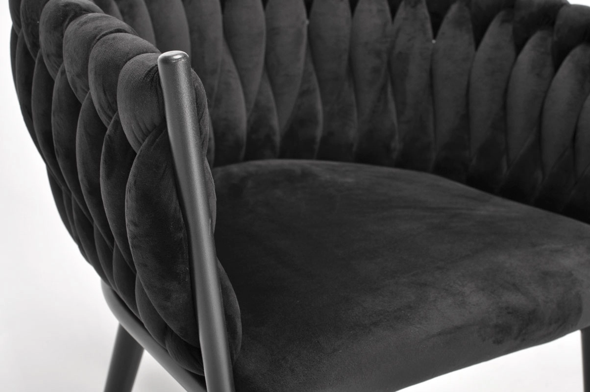 ROSA-lænestolen er designet til interiører, hvor stil og komfort mødes. Den dybe sorte farve med en diskret, fløjlsagtig glans virker tidløs og er let at kombinere med moderne, minimalistiske og glamourøse indretninger. Det strikkede ryglæn er et markant designelement, der forvandler ethvert rum til et sofistikeret miljø.