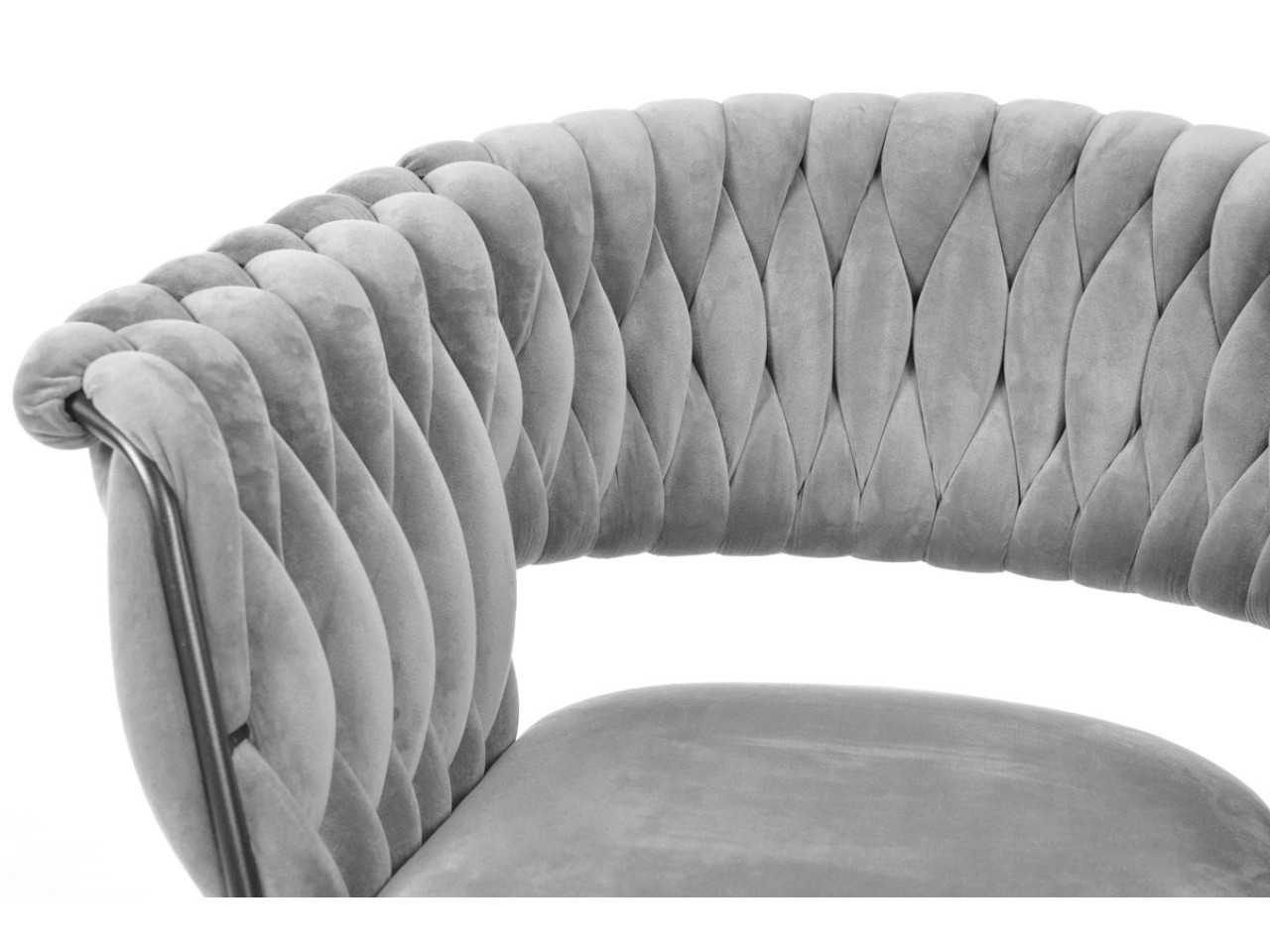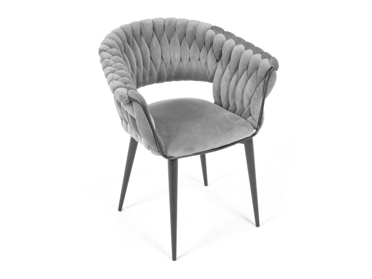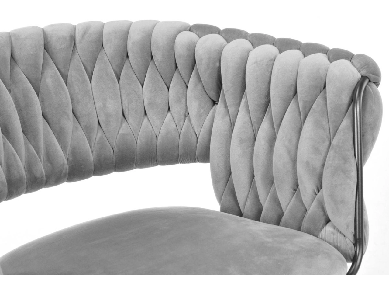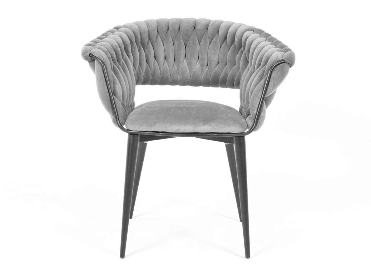 Skab en hyggelig krog derhjemme med et strejf af luksus. Den grå fløjl med diskret glans virker eksklusiv, reflekterer lyset behageligt og danner sammen med de sorte ben en tidløs, moderne kontrast. Det karakteristiske flettede polstrede ryglæn giver stolen et designpræg og samtidig en behagelig støtte.