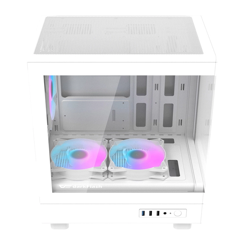DarkFlash DB330M er et kompakt Mini Tower, der kombinerer moderne design med effektiv køling. Det gennemsigtige panel i hærdet glas lader komponenter og RGB-effekter komme til deres ret, mens gennemtænkt luftflow og mulighed for op til fem blæsere holder temperaturerne under kontrol selv i krævende builds.