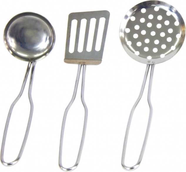 Øse, si, palet og grydelap gør det muligt for børn at klare alle køkkenopgaver i legen.