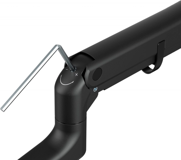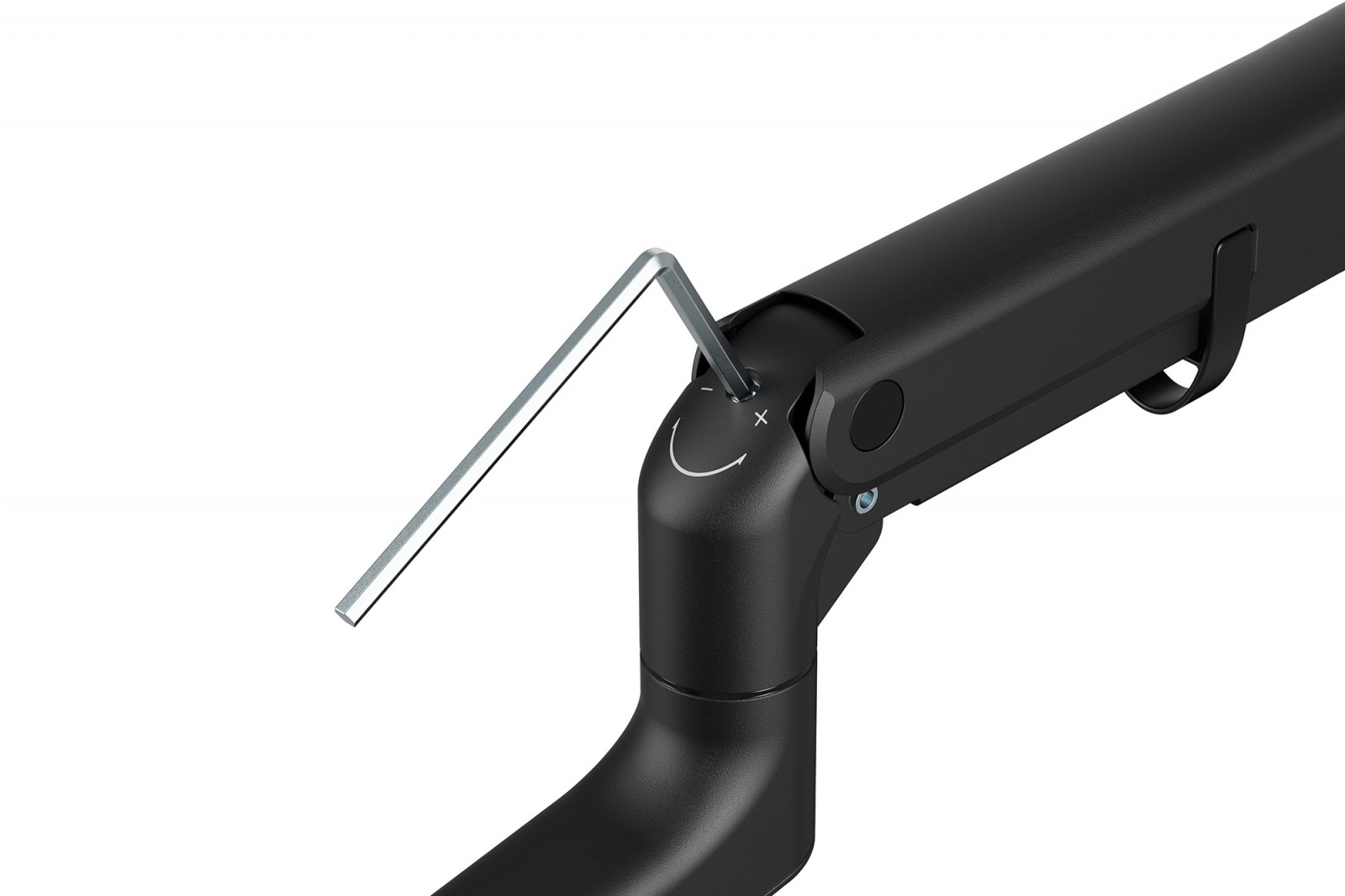Den integrerede gasfjeder med justerbar spænding holder skærmen i den ønskede position og muliggør fin, anstrengelsesfri justering af højde og hældning.