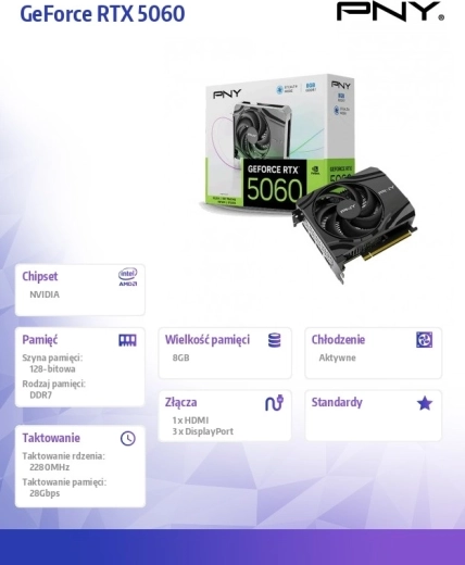 Få banebrydende ydeevne med grafikkortet PNY GeForce RTX 5060 8GB baseret på NVIDIA Blackwell-arkitekturen. Nyd høje FPS takket være DLSS 4, oplev flydende skabelse med NVIDIA Studio, og udforsk nye muligheder med AI-acceleration i både spil og apps. Det kompakte enkeltventilator-design passer perfekt i mindre kabinetter uden kompromiser på støjniveau og temperaturer.